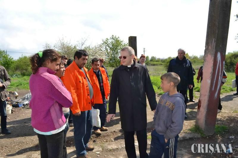 Anul acesta, Asociaţia Caritas Catolica Oradea, prin aportul cantinei sociale, a organizat acţiunea "Pită unsă", pentru a sprijini în mod regulat nevoiaşii care trăiesc la periferia oraşului, din cartierul Episcopia Bihor, precum şi beneficiarii cantinei sociale. În Săptămâna Patimilor, pentru a şasea oară, la fosta groapă de gunoi a oraşului, asociaţia a adus pachete de alimente. Acţiunea este susţinută financiar de Caritasverband Passau din Germania, iar pachetele au fost realizate, de această dată, de tinerii din Asociaţia Viaţă cu Autism. Marţi, 14 aprilie, preotul Mihai Fechetă, a adus din nou autobuzul Comunităţii Don Orione în comunitatea oamenilor fără adăpost. De această dată, nevoiaşii au fost vizitaţi şi de Episcopul Diecezan Böcskei László, alături de directorii Asociaţiei Caritas Catolica, Abatele paroh Rajna József şi Kiss Károly. Pachetele au conţinut două kilograme de orez, două kilograme de zahăr, două conserve de pateu, o conservă de carne, un kilogram de pâine, 1 kilogram de paste făinoase, biscuiţi, brânză topită, două pachete de supă şi doi litri de ulei. În fosta groapă de gunoi a oraşului locuiesc 15 familii, cu aproximativ 50 de membri, în barăci improvizate din haine, tablă şi resturi de plastice, pe ţăruşi de lemn. Sunt oameni care, majoritatea, nu au acte de identitate. Deşi de-a lungul anilor preotul Mihai Fechetă a încercat să-i ajute să-şi facă buletin şi să obţină o identitate oficială, de cele mai multe ori, acest lucru nu a fost posibil. Oamenii nu-şi amintesc unde s-au născut sau când. Aceştia sunt nevoiaşii care nu au şanse să se angajeze, iar copiii lor nu au acces la educaţie. Trăiesc fără apă potabilă, fără posibilitatea de a-şi asigura o minimă igienă şi nu beneficiază de niciun ajutor. Alături de preotul Comunităţii Don Orione, singurii care au încercat să-i ajute, şi continuă să o facă, sunt membrii Asociaţiei Caritas Catolica.