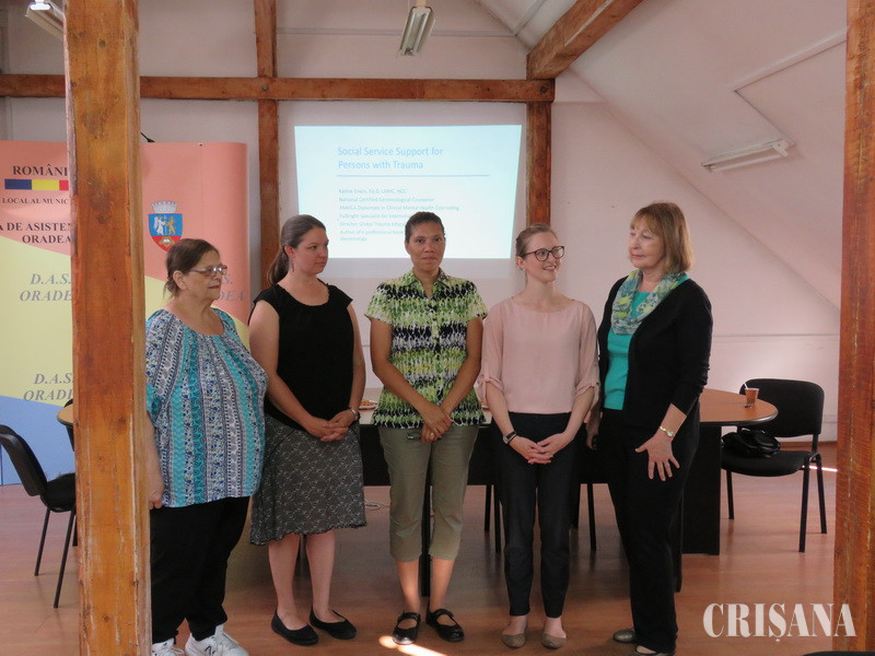 Întâlnirea, care s-a desfășurat la sediul Direcţiei de Asistenţă Socială Oradea, a fost susţinută de către o echipă formată din cinci psihologi masteranzi, doctoranzi şi profesori din Statele Unite, de la Divine Mercy University din Virginia, din cadrul programului „Green Cross Academy Training”: dr. Kathie Erwin, profesor licenţiat în sănătate mintală, Daniella Charles, Tanya Sensenig, Jennifer Meher şi Rose Bond, psihologi clinicieni şi masteranzi în sănătate mintală.