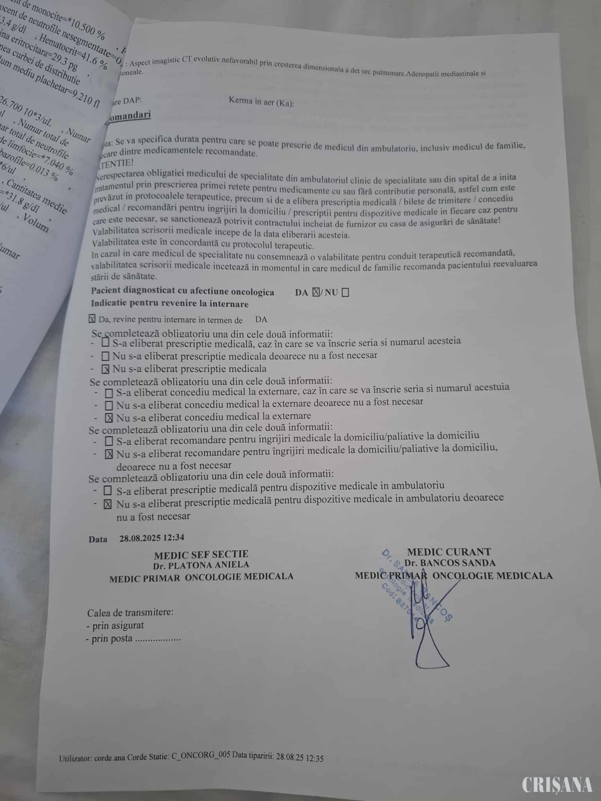 „Cu toate că sunt zile când nu mai poate respira, Erika merge să muncească pentru a pune pe masă mâncare și cele necesare copiilor ei, dar și pentru tratamente. În momentul de față, femeia se află internată în spital”, a declarat Mădălin Carțiș, inițiatorul campaniilor umanitare „Alături de semenii noștri”.