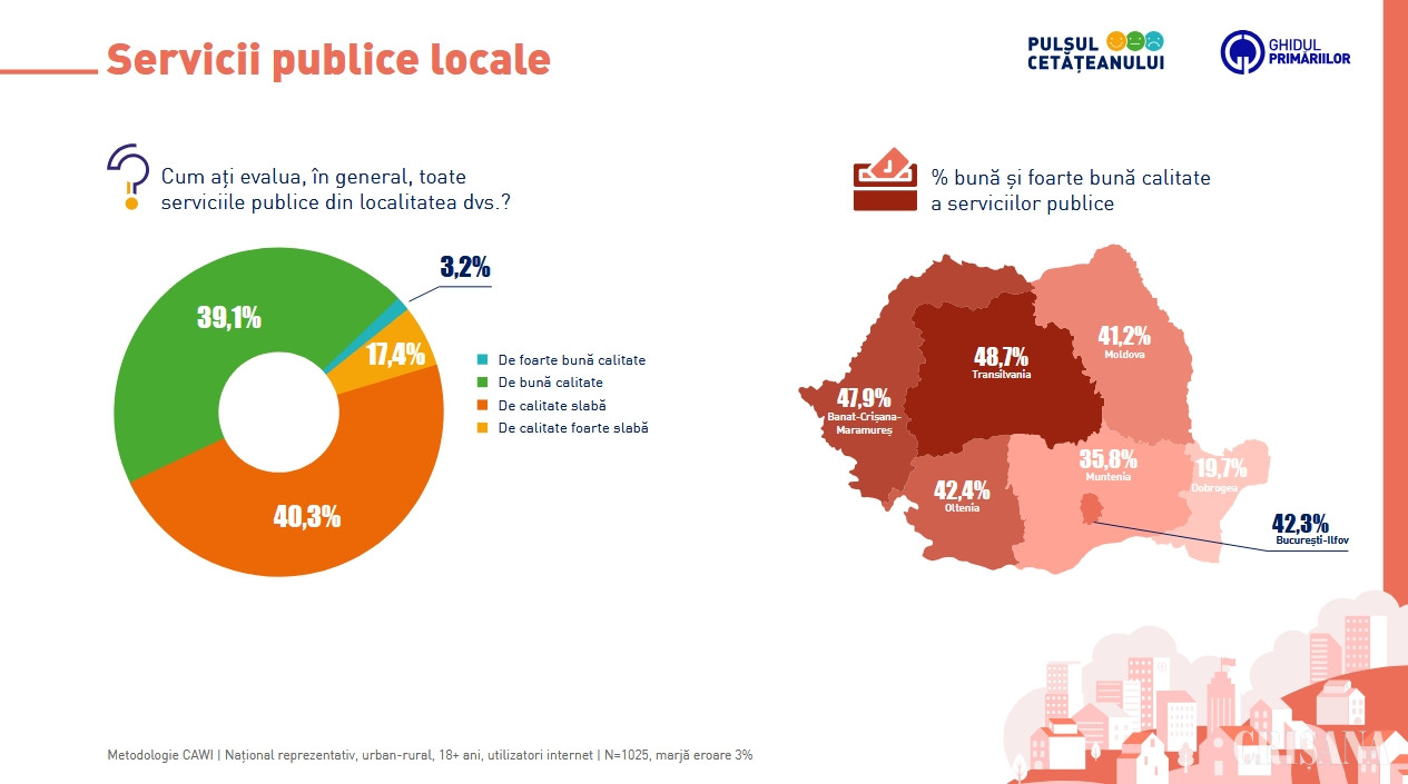 Oferta de locuri de muncă și serviciile de sănătate reprezintă cele mai mare urgențe conform studiului „Pulsul Cetățeanului” realizat de Ghidul Primăriilor și de IZI Data prin metoda „CAWI”, pe un eșantion național reprezentativ de 1.025 de persoane, cu o eroare de eșantionare de 3,06%.