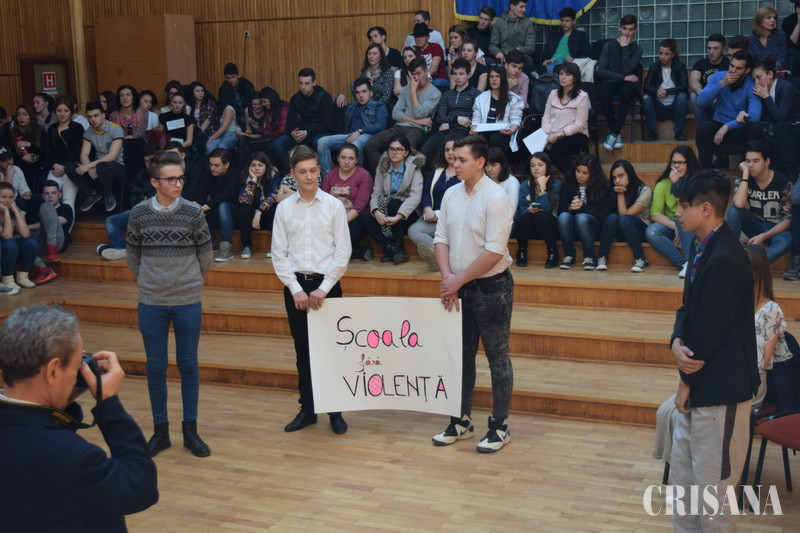 La Liceul Teoretic „Onisifor Ghibu” din Municipiul Oradea a debutat, joi, cea de-a noua ediţie a Concursului cu tematică preventivă „Şcoala fără violenţă”, adresat elevilor de liceu, organizat de poliţiştii Compartimentului de Analiză şi Prevenire a Criminalităţii din cadrul Inspectoratului de Poliţie Judeţean Bihor în colaborare cu reprezentanţii Inspectoratului Şcolar Judeţean Bihor şi cu cei ai Liceului Teoretic „Onisifor Ghibu”. Liceenii participanţi s-au implicat activ în elaborarea unor piese de teatru cu mesaj preventiv, pe care, ulterior, le-au transpus pe scenă, în spectacole destinate propriilor colegi. Peste 200 de elevi și profesori organizaţi în 13 echipaje din cadrul unor instituţii de învăţământ liceale din judeţul Bihor, respectiv din municipiul Oradea, municipiul Beiuș, Ștei, Aleșd, Tinca, Dobrești, Șuncuiuș au concurat pentru a-şi dovedi cunoştinţele în materie de prevenire a violenţei în mediul şcolar. Competiţia a constat în parcurgerea a două probe, respectiv un moment artistic și o probă teoretică care a constat în completarea unui chestionar cu 10 întrebări pe teme de educație juridică, pe baza cunoștințelor dobândite de adolescenți în urma studierii Ghidului de Prevenire a Victimizării Minorilor „Un Antidot al Violenței”, editat de Inspectoratul de Poliție Județean Bihor în anul 2015 și ca urmare a acumulării de informații preventive de la polițiștii de prevenire în cadrul acțiunilor desfășurate în instituțiile de învățământ. În urma parcurgerii probelor din concurs, la etapa pe liceu, premiul I a revenit echipajului format din elevii Liceului Teoretic „Nicolae Jiga” din Tinca, locul al II-lea a fost adjudecat de echipa Colegiului Tehnic „Alexandru Roman” din Aleșd, iar echipajul de la Colegiul Național „Avram Iancu” din Ștei s-a clasat pe locul al III-lea. De asemenea, tot în cadrul etapei pe liceu, au fost acordate şi două mențiuni, Liceului Vocațional Pedagogic „Nicolae Bolcaș” din municipiul Beiuș și Liceului Tehnologic nr.1 din Dobrești. Totodată, au fost acordate și două premii speciale, unul pentru „Cel mai bun mesaj preventiv”, obţinut de echipajul de la Colegiul Național „Samuil Vulcan” din municipiul Beiuș și Premiul special pentru „Cel mai bine pregătit echipaj în domeniul educației juridice”, obţinut de elevii Liceului Teoretic „Nicolae Jiga” Tinca.