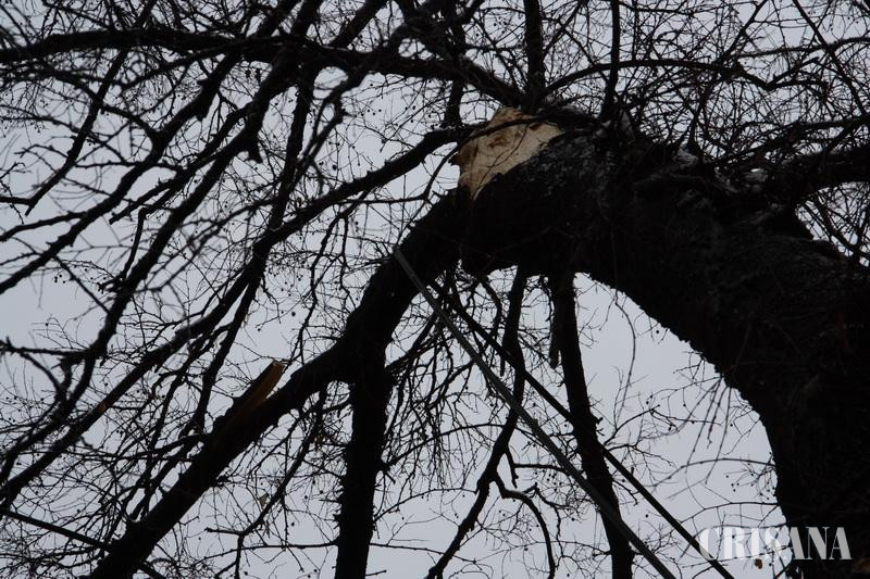 Un copac căzut, alte crengi smulse - Toaletări fără discernământ