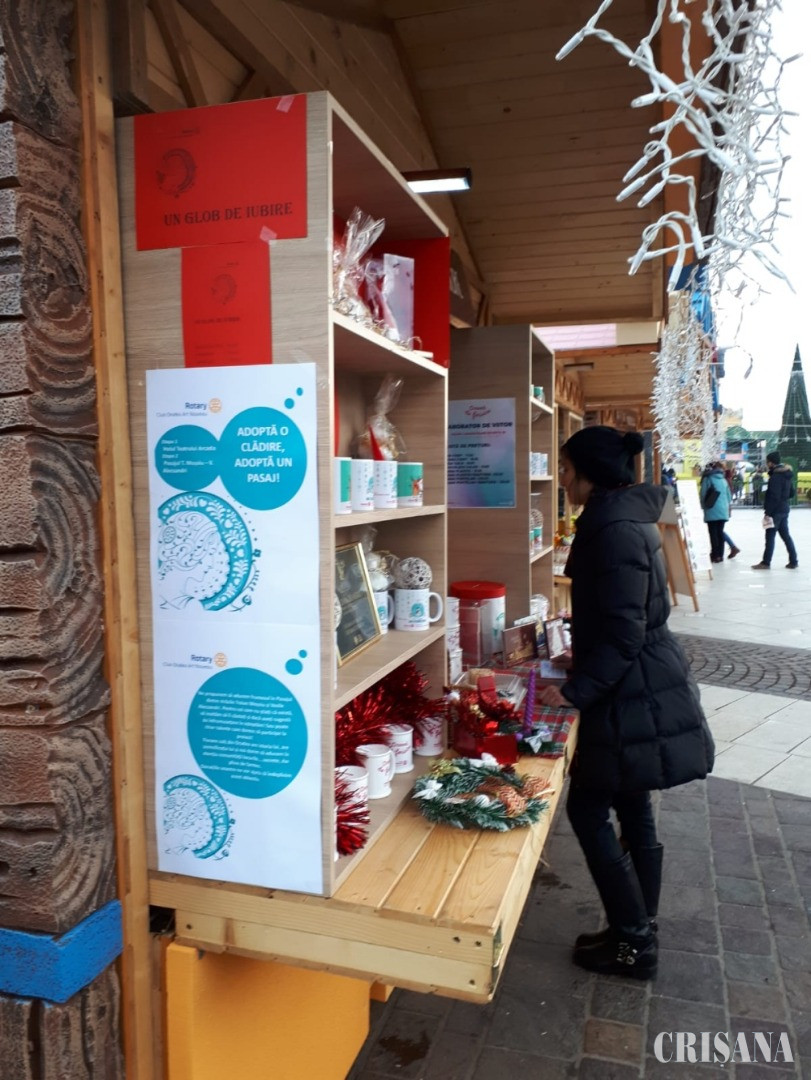 "Una dintre acțiunile dedicate acestui proiect a fost realizarea unor suveniruri pe care să le putem expune în cadrul Târgului de Crăciun", a spus Mirela Lupu, membru activ al Rotary Art Nouveau. "Membrele cu mâini dibace ale clubului nostru au realizat îngerași și omuleți de zăpadă, decorațiuni specifice sărbătorilor de iarnă, pe care le-au expus la standul "O cană de fericire" al Rotaract", ne-a mai spus Mirela Lupu. Organizatorii acțiunii Un glob de iubire s-au arătat încântați de primirea pe care le-au făcut-o la stand colegii lor mai "mari" din Rotaract și-i invită pe orădeni să admire exponatele realizate din iubire pentru teatru....