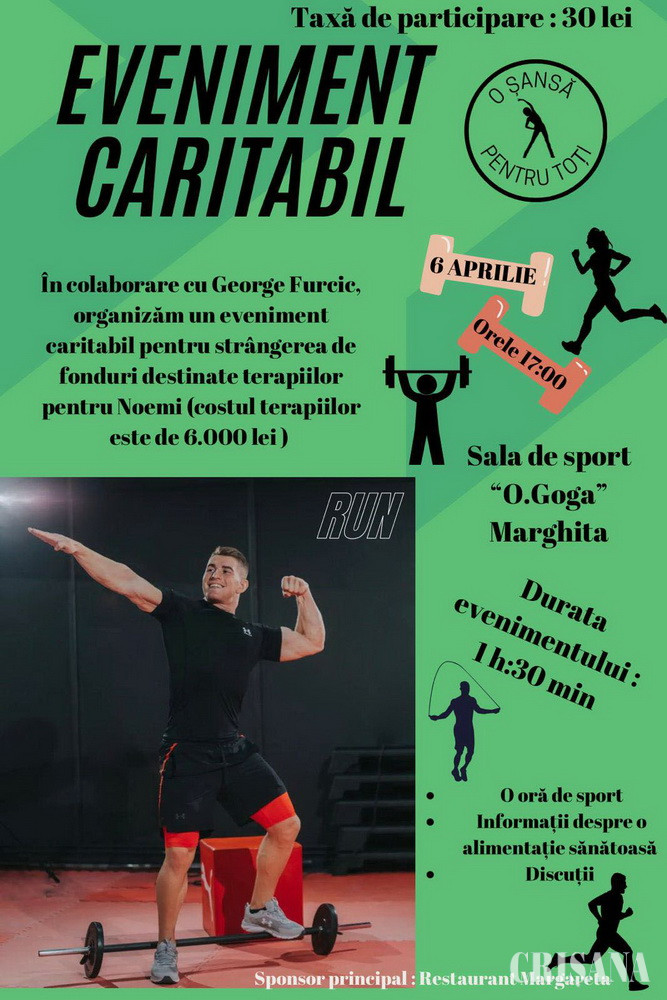 George Furcic, pompier în cadrul Detașamentului de Pompieri Marghita, deținător, la doar 23 de ani, a două titluri de campion național la culturism și a altor trei titluri de vicecampion la competiții internaționale de profil, organizează, în colaborare cu Asociația „O șansă pentru toți”, un eveniment sportiv caritabil, pentru o fetiță, în vârstă de 5 ani, grav bolnavă.