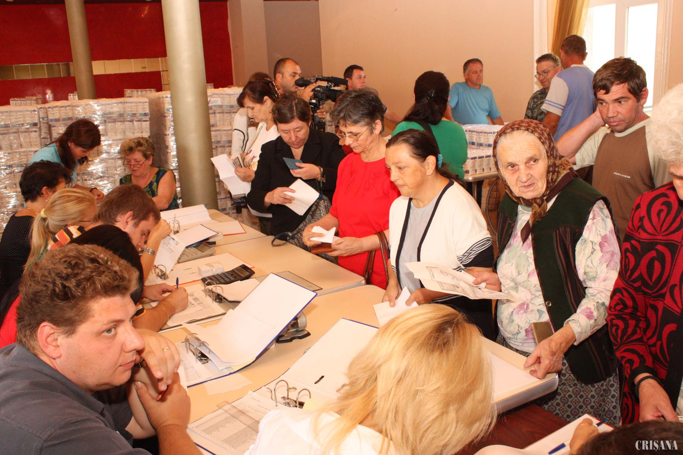 Începând de ieri, prin Administraţia Socială Comunitară Oradea, a început distribuirea de ajutoare alimentare provenite din fonduri comunitare la nivelul municipiului Oradea. Acţiunea se derulează la fosta cantină a Primăriei Oradea de luni până vineri între orele 10.00-18.00. Pe lângă statul la coadă încă de dimineaţă orădenii s-au arătat nemulţumiţi de cantitatea prea mare de făină care li s-a acordat. Mulţi ar fi preferat ca în locul acestor kilograme de făină să li se acorde alimente mai puţine însă într-o variană mai diversificată. "Ceea ce se întâmplă aici este o bătaie de joc. Ne călcăm în picioare pentru 15 kg de făină când puteau să ne dea bonuri valorice pe baza cărora puteam să ne hrănim familia o lună. Ce facem cu făina dacă nu o consumăm până în luna martie" ne-a declarat revoltată S.C, o pensionară din Oradea.
