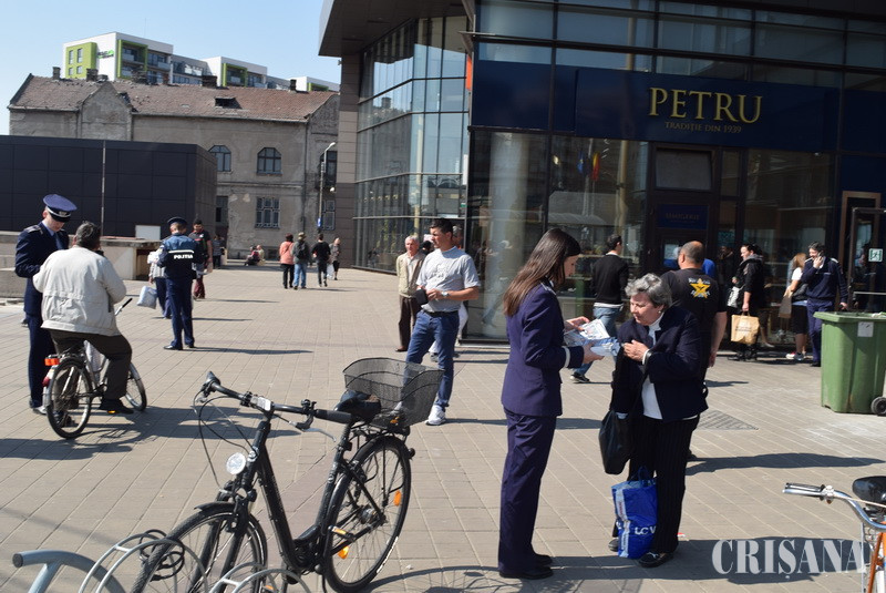 În perioada menţionată, prin colaborarea dintre poliţiştii Compartimentului de Analiză şi Prevenire a Criminalităţii şi poliţiştii de ordine publică, poliţie rutieră, investigaţii criminale din cadrul Inspectoratului de Poliţie Judeţean Bihor, la nivelul întregului judeţ sunt desfăşurate activităţi structurate pe mai multe domenii preventive, fiecare zi având o temă specifică. Pentru promovarea şi derularea eficientă a manifestărilor sunt cooptaţi şi poliţiştii de proximitate din judeţ, cei de ordine publică, iar activităţile menite a marca „Ziua Educaţiei Rutiere” vor fi desfăşurate în colaborare cu poliţiştii Serviciului Rutier din cadrul Inspectoratului de Poliţie Judeţean Bihor. De asemenea, poliţiştii de proximitate din cadrul Poliţiei Municipiului Oradea vor contribui activ la derularea activităţilor care vor avea loc în Municipiul Oradea, prin diverse activităţi educativ - preventive. Activităţi preventive sunt derulate în municipiile Oradea, Marghita, Beiuş şi Salonta şi în localităţile bihorene Aleşd, Săcuieni, Ştei, Nucet, Valea lui Mihai. De asemenea, poliţiştii de la posturile rurale de poliţie vor desfăşura activităţi preventive în cadrul „Săptămânii Prevenirii Criminalităţii”, în mediul rural. Pe întreg parcusul „Săptămânii Prevenirii Criminalităţii”, poliţiştii bihoreni au desfăşurat activităţi structurate pe mai multe domenii, cum ar fi: luni 3 aprilie 2017 - Prevenirea infracţiunilor contra patrimoniului; marţi - miercuri 4-5 aprilie 2017 - siguranţa în mediul online; joi 6 aprilie 2017 - prevenirea violenţei în mediul familial; vineri 7 aprilie 2017 - siguranţă rutieră. Astfel, luni în intervalul orar 10.00 –11.00, sub genericul „Un om prevenit, un om salvat!”, în colaborare cu polițiștii Serviciului Poliției Transporturi Feroviare Bihor, a fost desfășurată o activitate pentru prevenirea furturilor de la pasageri. În acest context, polițiștii de prevenire și cei de la transporturi au derulat activități de informare a călătorilor cu privire la consecințele unui comportament neglijent, privind protejarea bunurilor personale, în stația CFR Oradea. Cu această ocazie au fost distribuite și pliante cu recomandări preventive. De asemenea, în pieţele Cetate şi Rogerius, în zonele adiacente şi staţiile mijloacelor de transport în comun din proximitate, poliţiştii Compartimentului de Analiză şi Prevenire a Criminalităţii şi poliţiştii Biroului Poliţiei de Proximitate din cadrul Poliţiei Municipiului Oradea au desfăşurat activităţi menite să prevină victimizarea cetăţenilor prin infracţiuni de furt, tâlhărie şi înşelăciune, au purtat discuţii cu cetăţenii şi au distribuit materiale informativ–preventive. Scopul activităţilor preventive este sensibilizarea cetăţenilor cu privire la necesitatea adoptării unor măsuri de autoprotecţie, precum şi prezentarea consecinţelor ce decurg din comiterea de infracţiuni. Tot ieri, poliţiştii de proximitate şi ordine publică din judeţul Bihor au desfăşurat acţiuni de informare privind prevenirea infracţiunilor contra patrimoniului, în funcţie de specificul localităţii şi tipul de activitate planificat. Parteneri: asociaţii de proprietari, societăţi comerciale, asociaţii de pensionari.