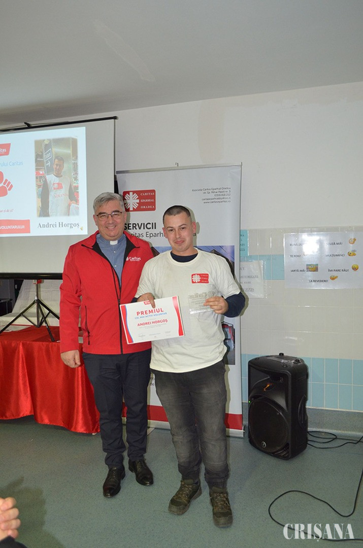 În cursul anului 2024, opt voluntari au făcut curățenie în cantină și au oferit un zâmbet și o vorbă bună celor prezenți la masa de prânz, acumulând 986 de ore dăruite în folosul aproapelui. Premiul i-a revenit voluntarului Andrei Horgoș.