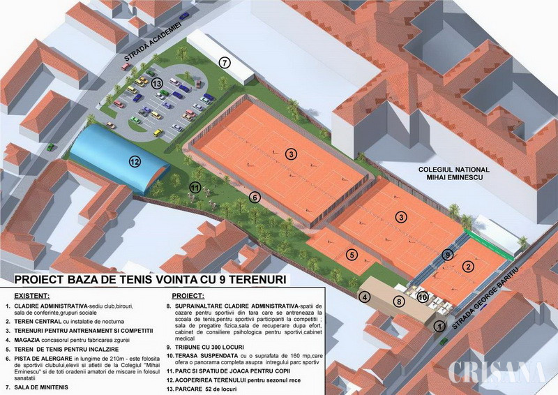 - Transformarea unui spaţiu aflat în părăsire şi degradare într-o bază sportivă având zece terenuri de tenis pe zgură, instalaţie de nocturnă, grupuri sanitare, de care se vor bucura, sperăm, multe generaţii de orădeni;