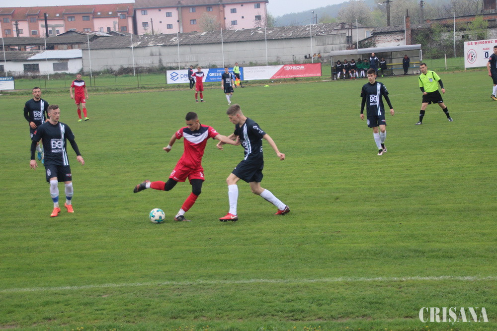 Speranțele gazdelor într-un rezultat bun au fost spulberate după pauză, când orădenii au marcat de două ori, însă tot de atâtea ori au acuzat și beiușenii neregului în suprafața adversă de teren. Mai precis, în minutul 53 au reclamat un henț în suprafața de pedeapsă, însă centralul a indicat lovitură de colț, iar la faza premergătoare primului gol au acuzat tot un henț la cel care a dat pasa din care oaspeții au preluat conducerea. Trebuie remarcată atitudinea mult schimbată în bine a gazdelor față de precedentele meciuri, în care dorința de victorie a fost una vizibilă, însă adversarul întâlnit s-a dovedit unul greu de „răpus”. După un start de meci destul de echilibrat orădenii au avut prima șansă de gol, dar bara transversală a fost aliata gazdelor în minutul 20, pentru ca cinci minute mai târziu Mihoc să trimită, cu capul, puțin alături, iar Fl. Popa (32) să șuteze peste poartă. Sergiu Ciocan (33, 39, 41) a avut bune oportunități fără rezultat pe tabela de marcaj. Start electrizant în partea a doua când lovitura de cap a lui Costea (49) a izbit bara transversală, iar din marginea careului mic șutul puternic trimis de Torok a avut aceiași soartă. După faza incriminată din minutul 53, oaspeții au înscris, (0-1) prin Laslău (60) în urma unei acțiuni personale. Chiar dacă jocul a dat impresia unui echilibru, acesta s-a „rupt” când golgheterul Sergiu Ciocan (79) a reușit desprinderea, (0-2). Beiușenii puteau reveni în joc, dar Țirban (80) a ratat din interiorul careului mic, în timp ce egoismul lui S. Ciocan (87) a privat echipa oaspete de încă un gol, deoarece acesta a șutat pe lângă bară, în locul unei pase la Pașca, complet liber în fața porții. Prin acest eșec situația beiușenilor devine una delicată în clasament, însă, cu siguranță, Alin Popa va găsi soluții pentru a redresa acest moment mai puțin fast prin care trece echipa. În ciuda înfrângerii, trebuie remarcat debutul, în rol de titular, a talentatului junior Rareș Bîrz, care s-a remarcat prin clarviziune în joc, eliminând acel trac care, de obicei, se „instalează” în fața propriilor suporteri.