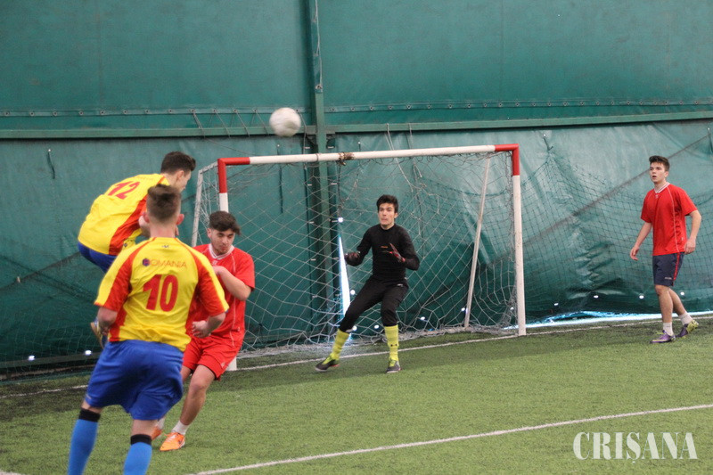 Practic, faza județeană s-a constituit într-o adevărată finală prin participarea celor două echipe, CN „Emanuil Gojdu” Oradea și CN „Avram Iancu” Ștei, căștigătoarele fazei pe zone. Organizatorii acestui meci, Marius Omuț și Ciprian Fiter, au prezentat celor doi delegați, prof. Daniel Hulea și Emanuel Coroiu, regulamentul de desfășurare. A urmat verificarea jucătorilor, ambele echipe având în lot doar elevi de la unităţile de învățământ pe care le-au reprezentat, spiritul competiției fiind astfel respectat. S-a jucat în formula 5+1, două reprize a câte 20 de minute fiecare. Partida a fost una destul de echilibrată, mărturie fiind și scorul, destul de strâns, în care victoria a revenit „gojdiștilor”, aceştia dovedind un plus de maturitate în joc după un start ezitant, în care „nepoții moțului” au ratat în primul minut două ocazii monumentale. După ce șteienii au mai irosit o bună ocazie, orădenii au deschis scorul pe contraatac, prin Cioloș (13), dar ratând și ei prin Hălmăgean (15) și Rada (16). Totuși superioritatea în joc a fost una care s-a materializat (2-0) datorită lui Boțoc care a înscris din apropiere. Partea a doua a început cu iureșul șteienilor însă Blig (21) și Marc (23) nu au materializat șansele ivite. Totuși, șteienii au punctat (2-1) prin Blig (25) pentru ca „gojdistul” Handra să aibă intervenția meciului la „ghiuleaua” lui Robert Marc (30). Un moment lipsit de sportivitate i-a avut ca protagoniști pe Boțoc și Blig (33) care s-au înjurat (?!) reciproc, iar sancțiunea administrată a fost una destul de blândă, doar cartonaș galben, însă Blig a părăsit terenul pentru două minute deoarece mai avea unul. În superioritate numerică, orădenii au punctat imediat (3-1), prin Hălmăgean (34), cel mai bun jucător de pe teren, gol care s-a dovedit a fi hotărâtor în stabilirea echipei câștigătoare. Echipa CN „Emanuil Gojdu” Oradea va reprezenta Bihorul la faza interjudețeană ce va fi organizată la Bistrița, la o dată ce va fi stabilită în curând.