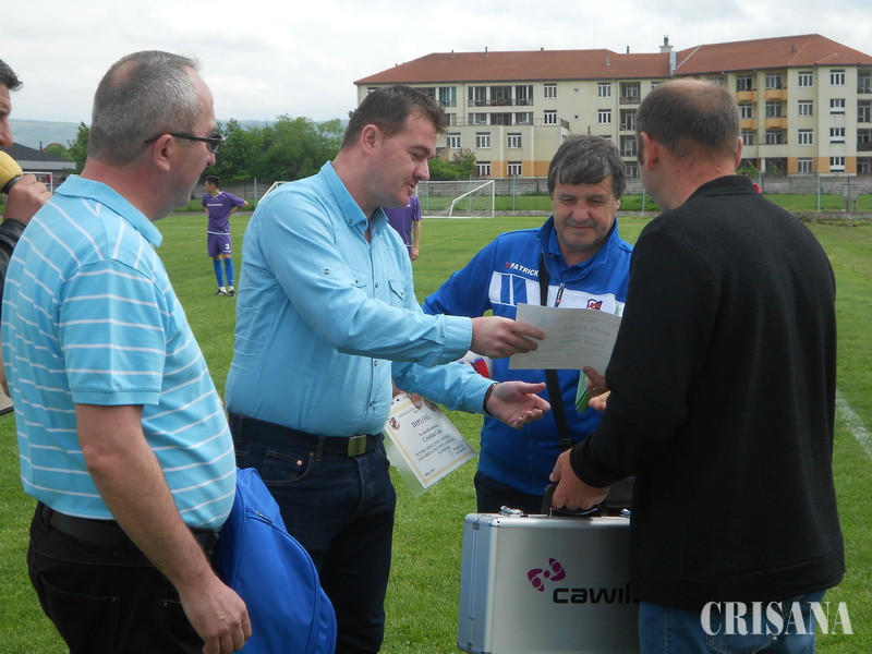 Viața unui om, și mai ales a unui tânăr de doar 24 de ani, este inestimabilă la fel cum recunoștința pe care o merită salvatorii, Dorel Miere și Cristian Coita. Evenimentul tragic, produs în timpul meciului cu CS Diosig, a fost relatat la timpul potrivit. Epilogul său s-a desfășurat sâmbătă, 13 mai, cu prilejul meciului dintre Crișul Aleșd și CS Mădăras. În semn de recunoștință și apreciere au fost prezenți la ceremonia de premiere: Radu Bitea, președintele AJF Bihor, Gheorghe Rusu, director de competiții pentru Liga a V-a, precum și cunoscutul comentator sportiv Victor Mihalcea. Protocolul stabilit pentru premiere, de comun acord cu arbitrii și cele două echipe, s-a desfășurat în minutul 9 al meciului, același minut când a avut loc tragicul eveniment. La locul din teren unde a căzut Andrei, s-a deplasat Victor Mihalcea care a comentat evenimentul și persoanele care au realizat premierea. După o scurtă rememorare a celor întâmplate în 22 aprilie, Victor a prezentat oficialitățile care au realizat premiera: Radu Bitea, președintele AJF Bihor, Sorin Motoca și Tiberiu Urs, vicepreședinți ai Asociației Sportive Crișul şi Ciprian Fogarași, președintele Asociației, aflat pe teren ca jucător. Au fost invitați cei doi eroi, Dorel Miere și Cristian Coita, cărora le-au fost înmânate diplome, mingi și echipament sportiv din partea AJF și a Asociației Sportive Crișul Aleșd. Aplauzele spectatorilor au constituit un alt premiu acordat de public. Păcat că la eveniment a lipsit Andrei Cătană, cel „înviat din morți”. A fost prezent în schimb tatăl său, Florin, prezență permanentă la meciurile de fotbal, retras într-un loc periferic, care cu emoții în glas a afirmat la sfârșitul ceremoniei: „Mulțumim lui Dumnezeu că a rămas în viață”. Apoi s-a reluat meciul de fotbal. Gazdele, cu o mare determinare și voință, doreau victoria pe care s-o dedice lui Andrei, absent din echipă. Crişul a pornit în trombă surprinzându-şi adversarul. Sergiu Pop (15) reușește, cu o lovitură de cap în diagonală, să valorifice o centrare venită de pe partea stângă (1-0). În minutul următor, juniorul Vlăduț Gordan, speranță a fotbalului aleșdean și nu numai, a urmărit o minge respinsă de portar și cu un șut plasat a ridicat scorul la 2-0. Majorarea diferenţei i-a aparţinut lui Balogh Claudiu care cu un șut puternic, din apropiere, a scuturat pentru a treia oară plasa oaspeților (3-0). Se părea că victoria gazdelor va fi facilă însă echipa vizitatoare nu a fost de acord. Cu jucători emblematici precum Șipoș, Kadar sau Dobrescu au echilibrat meciul amenințând în final victoria gazdelor. Dobrescu (36), jucător plivalent de valoare, a reuşit să reducă scorul cu un șut puternic din afara careului (3-1). Golul oaspeților a fost un avertisment pentru repriza a doua pe care au dominat-o cu autoritate împingând jocul în jumătatea gazdelor. Au ameninţat poarta remarcându-l pe Țîrtea care a avut intervenții spectaculoase. Menționăm că în acest interval oaspeții au avut și două bare. Gazdele, pentru a-și apăra scorul, s-au retras în apărare, unde Ciprian Fogarași, omniprezent pe tren, în lipsa celor doi fundași absenți Dejeu și Cătană, a organizat sistemul defensiv evitând primirea altor goluri. Atacurile gazdelor s-au bazat pe contre, acestea reușind la rândul lor să trimită mingea de două ori în bară și să rateze cu poarta goală. Oaspeții, cu o condiție fizică superioară, n-au renunțat reușind prin Șipoș (90) să reducă din diferenţă, valorificându-şi astfel dominarea. Minutele de prelungire au fost dramatice. Gazdele, cu ultimele eforturi, au luptat pentru menținerea scorului, iar oaspeții, folosind întreg arsenalul de care dispuneau, au încercat egalarea care nu s-a produs. Un meci frumos de un bun nivel calitativ între două echipe de valori apropiate. De la gazde s-au remarcat Țîrtea, Fogarași, Gordan și Sergiu Pop, iar de la oaspeți Dobrescu, Kadar și Șipoș.