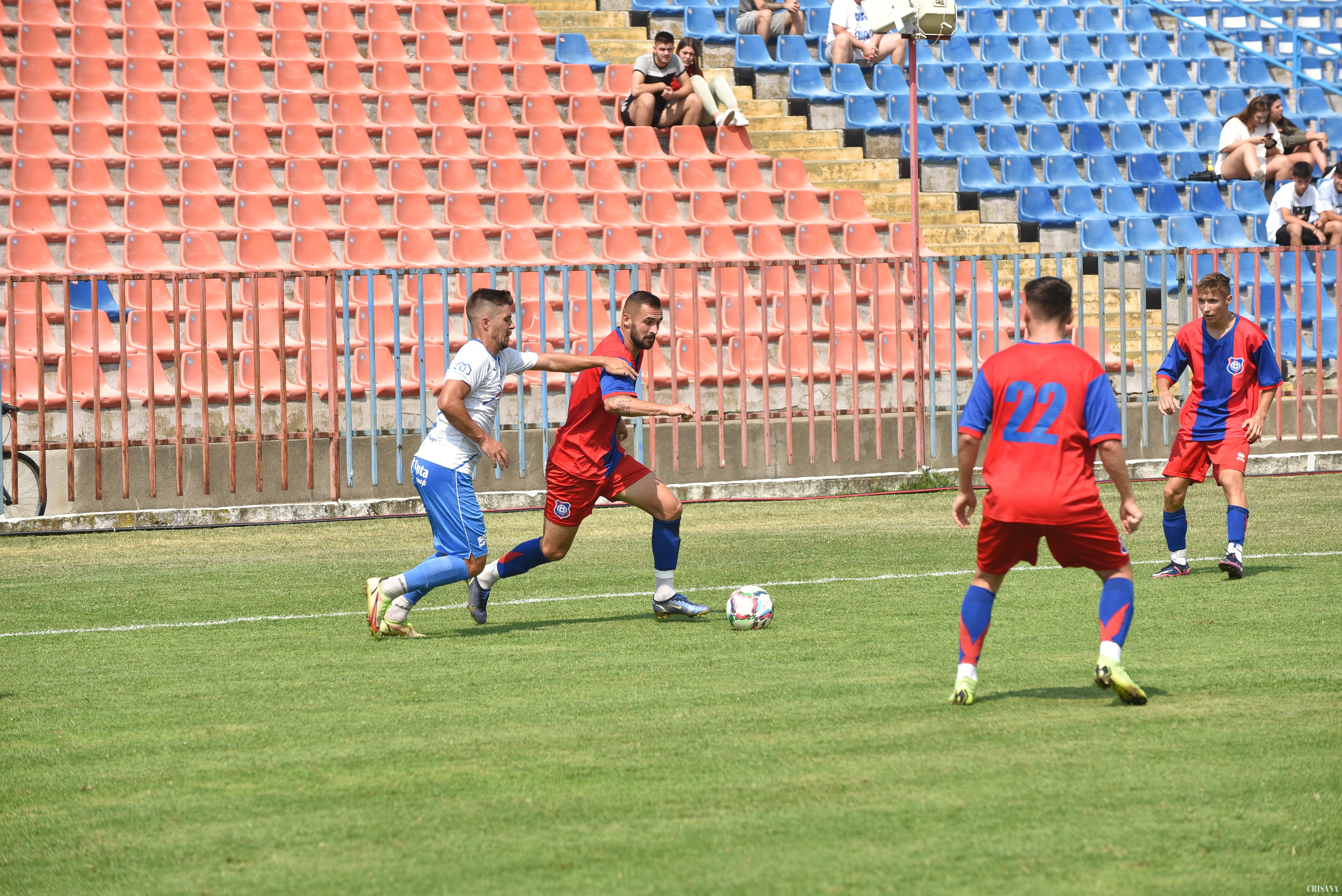 În ciuda faptului că are la dispoziție un lot de jucători alcătuit în mare măsură din jucători tineri și foarte tineri, Florin Farcaș a pregătit excelent echipa în ultima săptămână fapt care a condus către acest rezultat totuși neașteptat. Roș-albaștrii au avut de această dată în Sergiu Jurj omul de gol, un atacant bătăios dar care nu se lipește de gol foarte des. În jocul din Banat însă Jurj a reușit o triplă într-un interval de timp de doar 19 minute (minutele 6, 22 și 25). Bihorenii au evoluat foarte bine pe parcursul primei reprize în care, pe lângă cele trei goluri marcate de Sergiu Jurj, au irosit și un penalty prin Marius Hosu, în minutul 10. Gazdele, care se anunțau a fi extrem de redutabile având în vedere parcursul din campionatul trecut, au redus din diferență abia în minutul 60. Totuși, scorul final a consemnat aceeași diferență de trei goluri înregistrată după 45 de minute în favoarea orădenilor care au mai marcat o dată prin tânărul Andrei Hosu, în minutul 77. Rezultatul este unul excelent având în vedere și condițiile meteo, temperatura exterioară la ora jocului de sâmbătă fiind caniculară. Cu toate acestea, tânăra echipă bihoreană nu s-a menajat deloc, atitudinea în joc fiind excelentă. În ciuda acestui succes elocvent, tehnicianul bihorenilor și-a exprimat la final nemulțumirea cu privire la lotul de jucători, 2-3 poziții din teren nefiind adecvat acoperite la această oră.