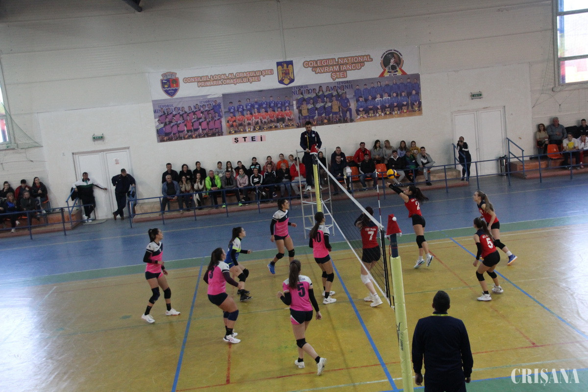 Vecine în clasament, șteiencele pe cinci, în timp ce oaspetele pe șase, cele două echipe au oferit un spectacol destul de agreabil, în care gazdele au pornit la turație maximă în primul set, iar diferența s-a instalat confortabil, 8-5, 16-11, pentru ca la final aceasta să fie destul de consistentă, 25-15. Setul al doilea a avut cam aceleași coordonate cu șteiencele în prim plan, care nu au dat nici o speranță partenerelor de întrecere, 8-3, 16-12, pentru ca setul să se încheie cu 25-17. Spre lauda lor, oaspetele nu au depus armele pornind hotărâte în al treilea set și preluând conducerea, 1-5, 3-8, 12-16. Cursa de urmărire a gazdelor a fost răsplătită spre final de set când au egalat la 19, după care s-a mers „minge la minge” până la 23 egal, moment în care luciditatea junioarelor șteience a fost hotărâtoare, ele reușind două puncte consecutive prin care și-au adjudecat setul, 25-23, și, implicit, meciul. Astfel, prin această victorie, șteiencele au confirmat „calculele hârtiei”, obținând o victorie anticipată de iubitorii acestei discipline sportive cu mare tradiție în urbea de sub Apuseni. Chiar dacă acum sunt clasate doar pe locul cinci, antrenorul fetelor, prof. Răzvan Fărcanea, are mare încredere în componentele lotului, având speranța că în următoarele etape vor obține mult doritele victorii care le vor propulsa în clasamentul unei serii în care se regăsesc echipe din vechi centre voleibalistice ale țării. De altfel, Seria F are în componență echipele LPS Cluj Napoca, CSȘ Sighetu Marmației, CSȘ 2 Baia Mare, ACS Silvania Sport Șimleu Silvaniei, CSȘ „Avram Iancu” Ștei, CSȘ Blaj, CS Ocna Mureș, clasate în această ordine.