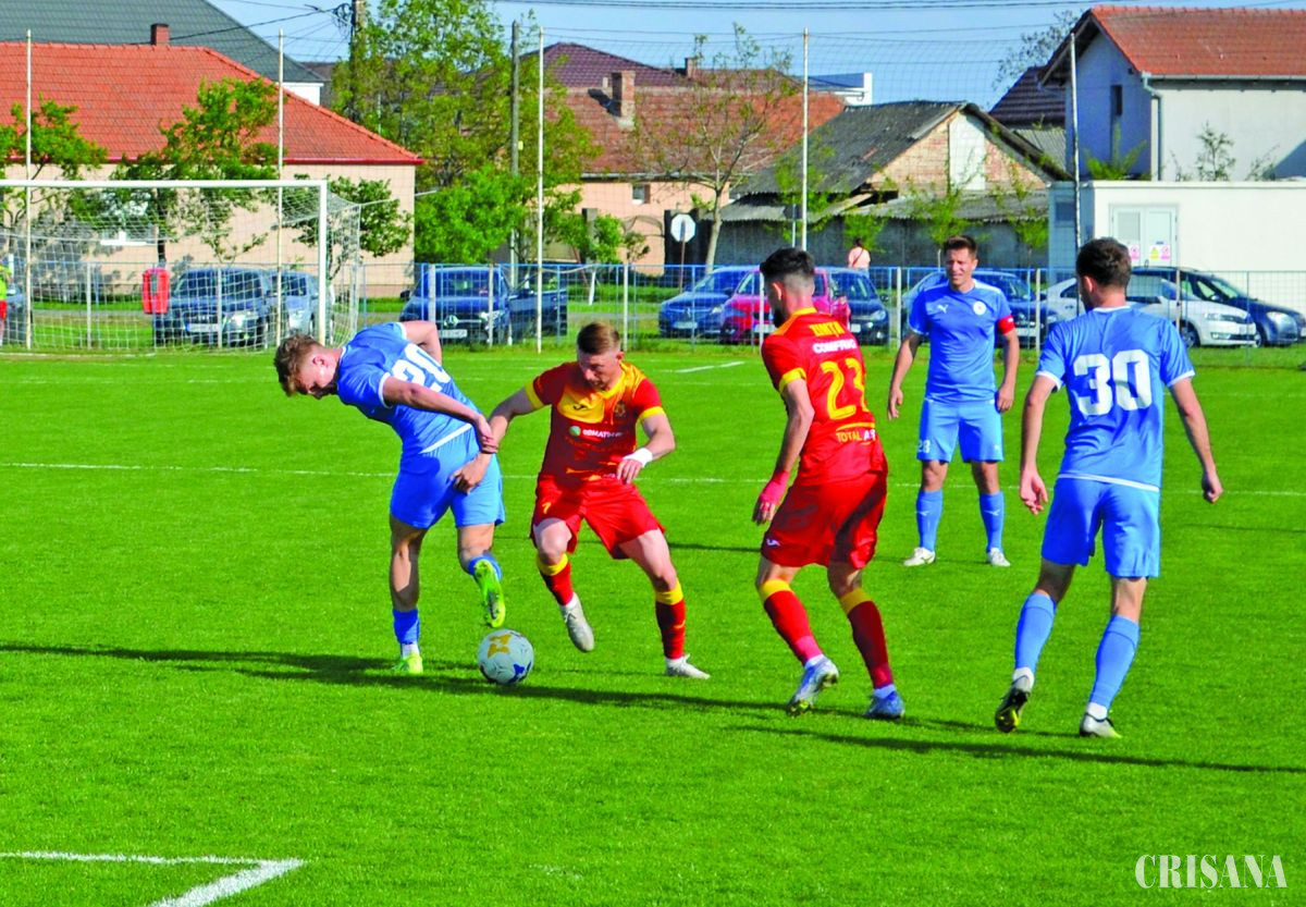 La fel ca etapa trecută la Satu Mare, Crișul a pierdut în minutele de prelungiri și tot după o lovitură de la 11 metri acordată cu ușurință. Arbitrul George Roman, care la precedentul duel direct de la Sântandrei, câștigat de zălăuani cu 1-0, nu acordase două penalty-uri bihorenilor, a văzut acum un henț al unui jucător al gazdelor aflat în ”zid” la o lovitură liberă, arătând punctul de la 11 metri. Alexandru Zaharia (90+2) a transformat lovitura (1-2) și mai menține speranțele Zalăului la barajul de promovare.