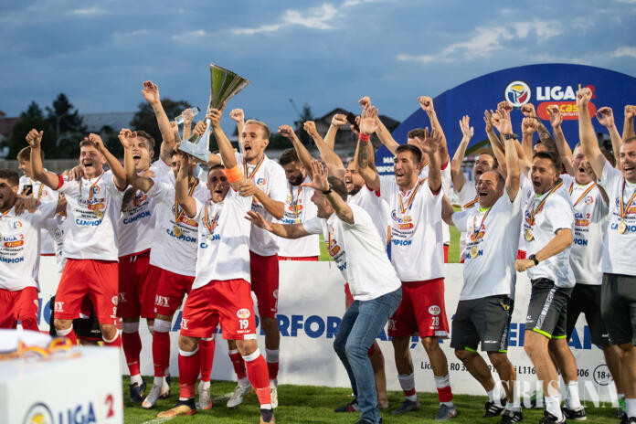 UTA Arad a câștigat Liga II și, la finalul partidei de la Pitești, jucătorii și staff-ul au primit trofeul acordat campioanei.