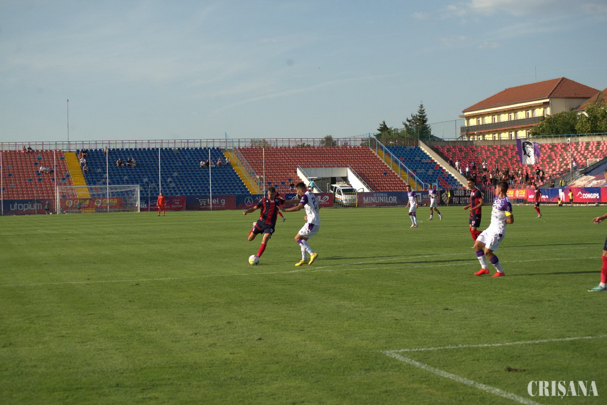 Presiunea publicului, a rezultatului, a lipsei de omogenitate și multe alte ingrediente de acest gen au condus către o evoluție modestă a orădenilor pe parcursul primei reprize în care piteștenii și-au creat numeroase ocazii de a marca și doar datorită portarului Accinelli tabela de marcaj a rămas neschimbată. Având în vedere lotul de jucători de care dispune FC Argeș, probabil că nu foarte multă lume anticipa o evoluție complet schimbată a roș-albaștrilor pe parcursul ultimelor 45 de minute. Bihorenii au revenit de la cabine mult mai curajoși iar asta evident că a produs efecte prin numărul de ocazii create la poarta adversă și mai ales prin golul marcat de atacantul Ioan Hora, în minutul 51, care astfel și-a făcut un frumos cadou cu o zi înainte de împlinirea vârstei de 36 de ani. Pe final, piteștenii puteau egala dar jucătorii lui Nicolae Dică au ratat ocazii uriașe prin Seto și Gronner. Aceste momente au creat o frustrare imensă tehnicianului argeșenilor care astfel a considerat oportun să nu se prezinte la conferința de presă de la finalul partidei.