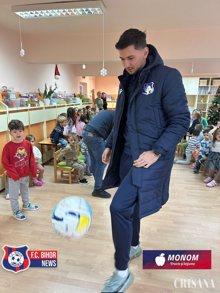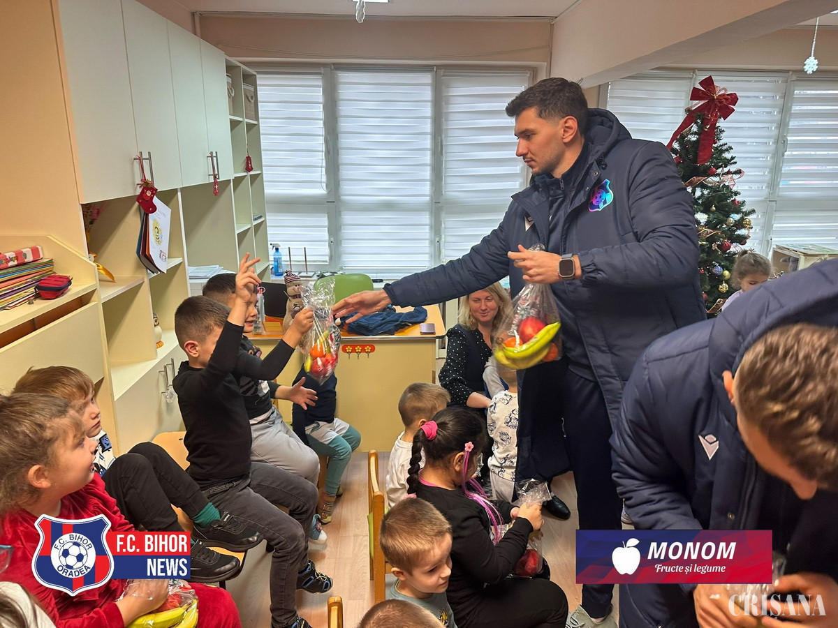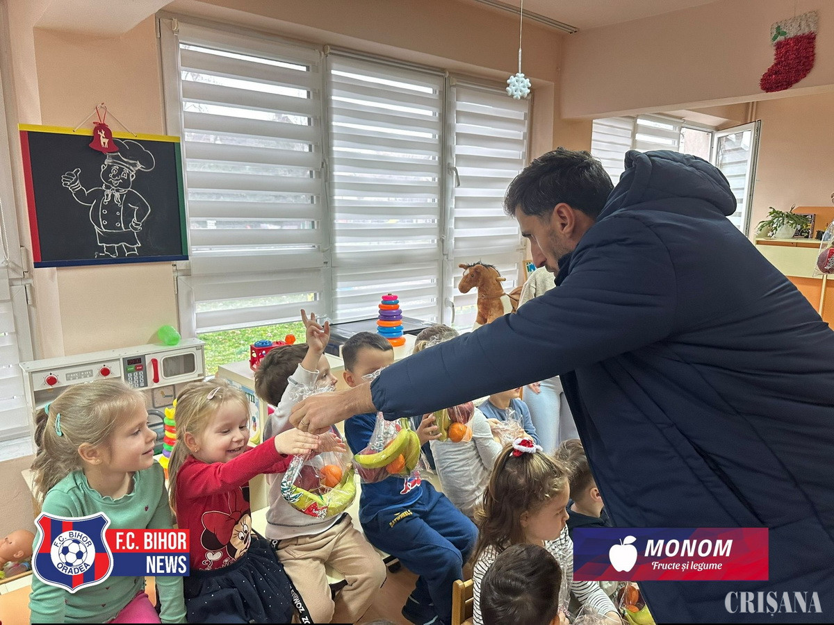FC Bihor a adus spiritul sărbătorilor la Grădinița cu Program Prelungit Nr. 25 din Oradea, unde jucătorii Ioan Filip, Ionuț Ban și Ionuț Rus au fost mesagerii Moșului, oferind surprize și multă bucurie celor mici.
