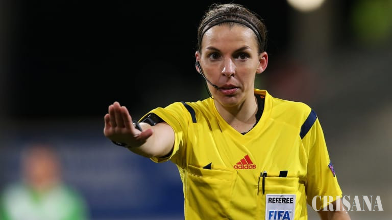 Frappard, care şi-a făcut debutul ca arbitru de centru în aprilie 2019 în Ligue 1, a acordat trei cartonaşe galbene şi a ignorat solicitările ucrainenilor pentru un penalty, după un duel între Benjamin Verbic şi Leonardo Bonucci în careu. Antreior, Stephanie Frappart a arbitrat în 2011 în liga a treia franceză, iar trei ani mai târziu a condus primul meci din Ligue 2. Debutul în Ligue 1 şi l-a făcut în 2019, atunci când a devenit prima femeie care arbitrează un meci din prima ligă masculină, la partida dintre Amiens şi Strasbourg. În noiembrie, anul trecut, Frappart a condus a doua manşă dintre Dundalk şi Linfield (campioana Irlandei), meci în care a acordat două galbene. Cu câteva luni în urmă arbitrase Supercupa Europei dintre Liverpool şi Chelsea.