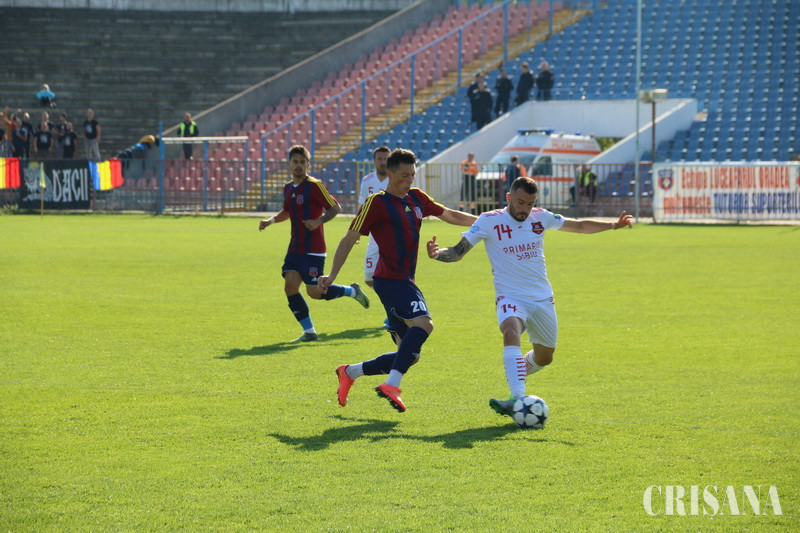 Așa cum o arată și scorul, repriza secundă a fost cea în care gazdele au tranșat soarta partidei chiar dacă nici evoluția din prima parte nu a lăsat de dorit. Bihorenii au dominat și primele 45 de minute, dar cei care au înscris au fost oaspeții. Până la deschiderea scorului reușită de Vasile Pop în minutul 34, orădenii au ratat două oportunități prin Bedea care a șutat peste poartă de la marginea careului mare în minutul 12 și prin Alexandru Dulca al cărui șut din careu a fost reținut de portarul sătmărenilor în minutul 32. Așa cu menționam mai sus, cei care au înscris au fost oaspeții. Vasile Pop a pătruns spre poartă, pe dreapta, a ajuns la colţul careului mic şi a marchat cu un şut la colţul scurt, pe jos, pe lângă portar.