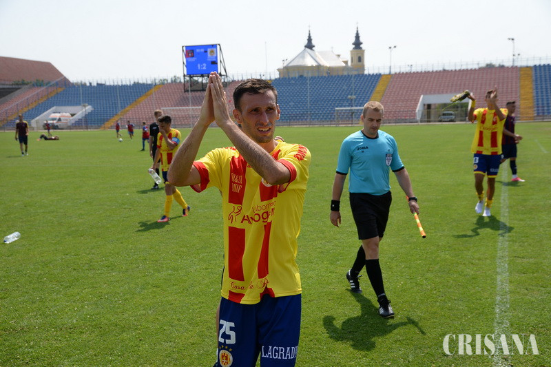 O partida complet nereușită care încă din start își anunța oarecum deznodământul. Orădenii au primit vizita unei echipe foarte bine închegate, excelent așezată în teren și care în dese rânduri a ieșit curajos pe atac cu toate că în sezonul trecut evolua în Liga a III-a. De partea cealaltă, orădenii nu au fost capabili să-și „desfacă” adversara, și în ciuda faptului că în mare parte a timpului au controlat jocul nu și-au creat ocazii periculoase. Singurele oportunități din prima repriză au venit ca urmare a unor șuturi de la distanță. Cea mai mare șansă i-a aparținut lui Codoban care în minutul 45 a șutat plasat, cu stângul, din 18 metri, dar tânărul portar advers (19 ani) a izbutit să respingă. Ceva emoții a avut și portarul gazdelor care a fost surprins ușor ieșit din poartă de lovitura liberă de la 40 de metri bine executată de „decarul” Zaluschi.