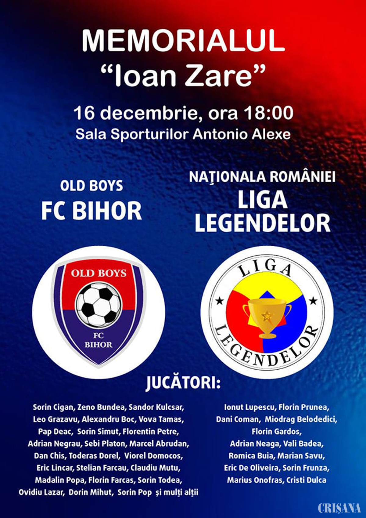 Fostul fotbalist Ioan Zare va fi omagiat la mijlocul lunii viitoare printr-un eveniment organizat de Old Boys FC Bihor (președinte Adrian Moisa). Vineri, 16 decembrie, de la ora 18.00, la Arena Antonio Alexe va avea loc un meci între Old-Boys FC Bihor și „Liga legendelor”, care reunește foști internaționali sau foști jucători din Liga 1.