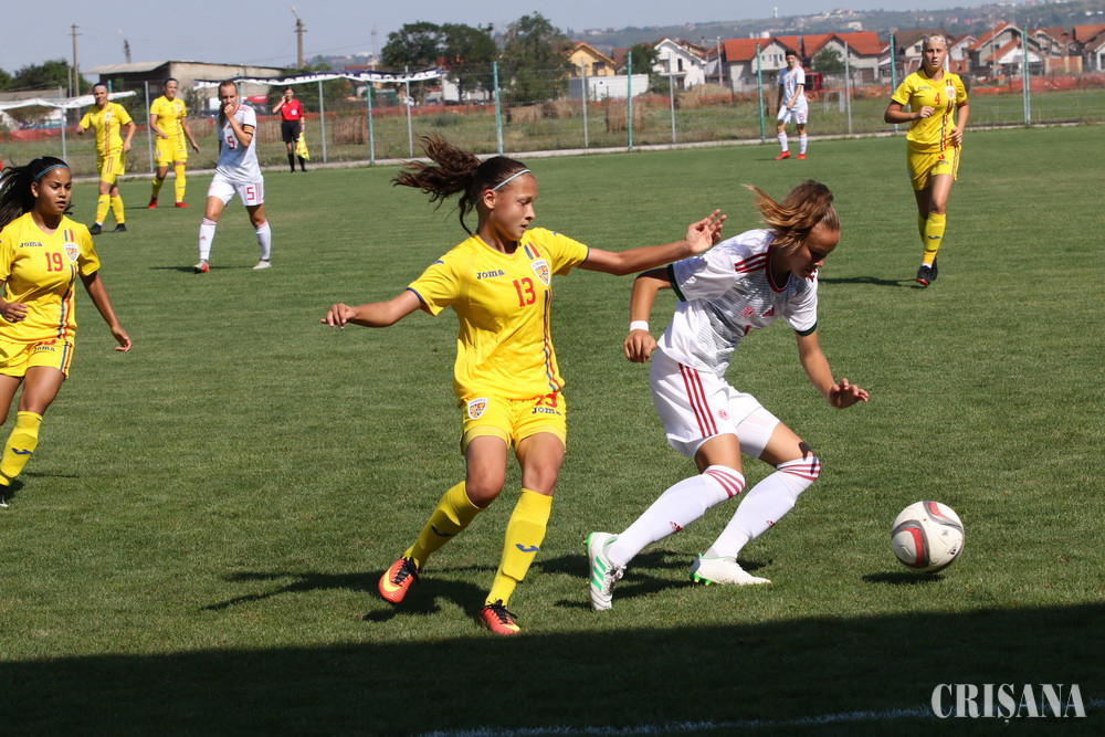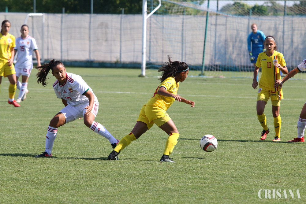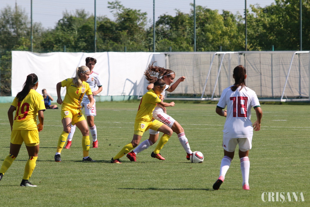 Partida, care s-a defăşurat pe Stadionul Luceafărul din Sânmartin şi care a prilejuit încheierea stagiului centralizat de pregătire desfăşurat în Bihor, s-a încheiat cu nu mai puţin de 10 goluri marcate, fotbalistele pregătite de Irina Giurgiu reuşind să reducă uşor din handicap doar în partea secundă. Cu un joc de apărare visător, româncele au încasat nu mai puţin de 4 goluri în prima repriză reuşind să înscrie o singură dată, prin Cristina Botojel, în minutul 43. În mitanul secund, pentru tricolore au mai punctat Ioana Bălăceanu, în minutul 62, şi Adina Borodi, în minutul 80. Golurile selecţionatei maghiare au fost marcate de următoarele: Bokor Bianka 24, Edina Ciontoş 27 (autogol), Siber Gloria 36, 47, Savanya Csilla 44 şi Papai Emoke 48, 55 din penalty. Jocul a fost arbitrat de către Adina Popa – Eniko Biro, Diana Ilie, arbitru de rezervă fiind Adina Moza.