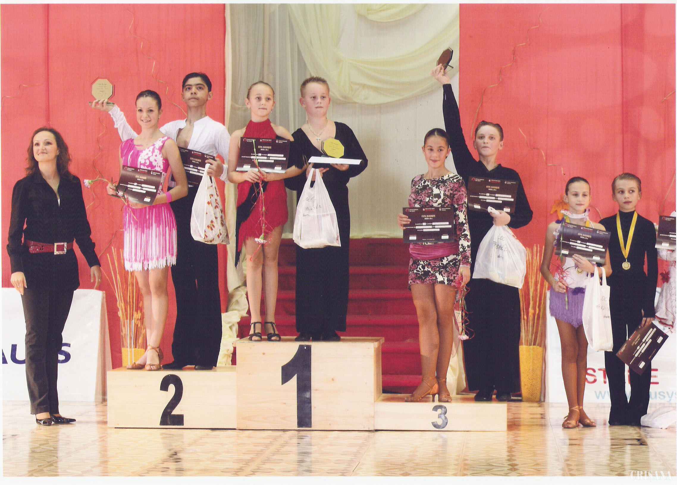 Locul 3: Andrei Miclea - Runcanu Viviene (categoria E 10-11 ani), Raul Moga - Huve Sarah (categoria open basic latino 12-13 ani);
