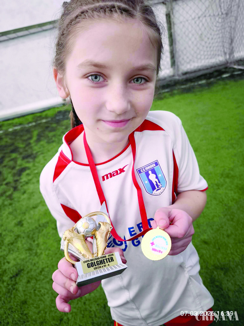 Fetele noastre s-au întors acasă nu doar cu unul dintre cele mai strălucitoare trofee ale zilei, ci și cu cel special pentru golgetera turneului, obținut de Nagy Viktoria, în vârstă de 8 ani, jucătoare a Clubului Juniorul Salonta.
