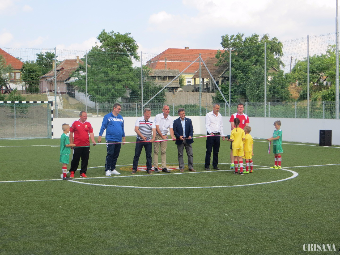 Investiția de aproximativ 100 de mii euro a fost finanțată în proporție de 85 la sută de Gurvenul Maghiar, primăria localității Esztár contribuind cu diferența de aproximativ 15 la sută. Panglica a fost tăiată de secretarul de stat Tasó László, vicepreședintele CJ Hajdú-Bihar, Tasi Sándor, directorul AJF Hajdú-Bihar, Csige László, primarul Szécsi Tamás și președintele AJF Bihor, Radu Bitea, care a concluzionat: „Această bază sportivă este un model de urmat și pentru comunitățile locale din Bihor, acestea având posibilitatea, odată cu modificarea Legii 69/2000, de a dezvolta infrastructura sportivă locală”.