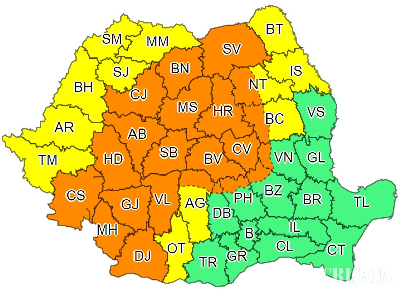 În zona de munte, sudul Banatului, în cea mai mare parte a Olteniei și a Transilvaniei și în nordvestul Moldovei vor fi averse torențiale, descărcări electrice, vijelii și grindină de medii dimensiuni, iar în intervale scurte de timp (1-3 ore) sau prin acumulare cantitățile de apă vor fi de 30...40 l/mp și izolat peste 50...70 l/mp.