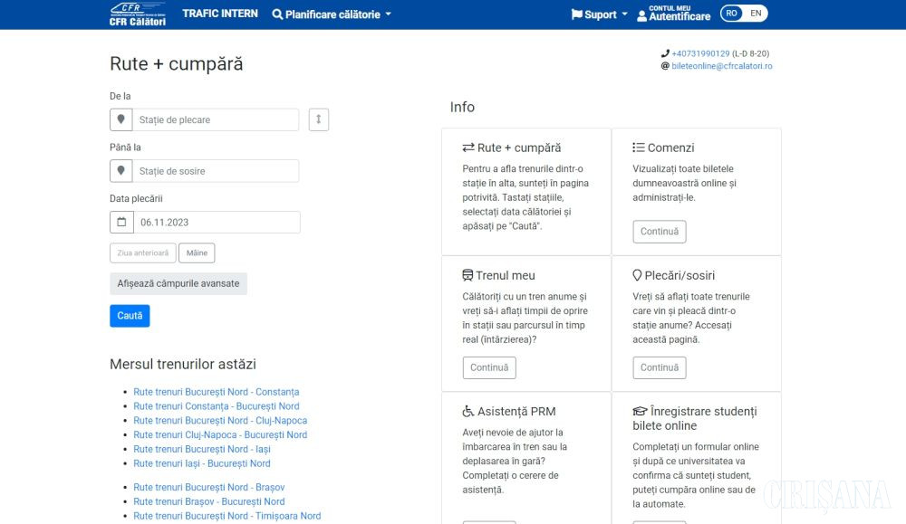 Potrivit companiei, pentru realizarea de către SC Informatică Feroviară SA a unor lucrări de mentenanță la echipamentele de comunicații, de luni, de la ora 23.00, până marți, la ora 4.00, vor fi afectate mai multe servicii.
