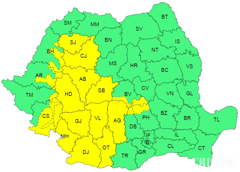 Avertizarea este în vigoare până miercuri seara, la ora 23.00.