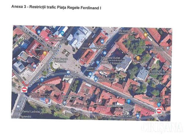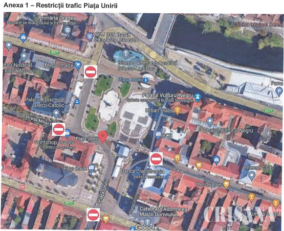 La fel se va întâmpla și în Piața Ferdinand, unde traficul va fi suspendat între orele 10.00 și 00.00, pe str. Iosif Vulcan, Podul Sfântul Ladislau și str. Libertății.