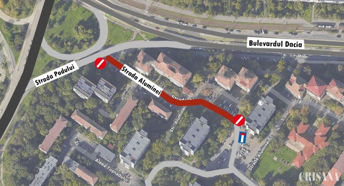 Primăria Oradea informează cetățenii că de azi, 1 octombrie, ora 9.00, până în data de 7 octombrie, circulația rutieră pe strada Aluminei, între strada Podului și blocul de locuințe numărul 53, va fi închisă.