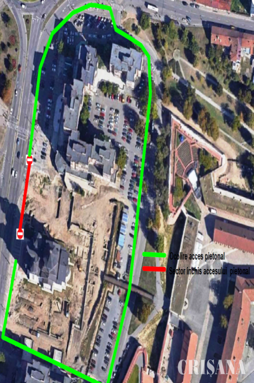 Circulația pietonală va fi restricționată în zona nordică a actualului traseu, în partea stângă a Catedralei Ortodoxe. Rutele pietonale se vor desfășura conform planului de situație din atașament, pe traseele marcate cu linie verde.