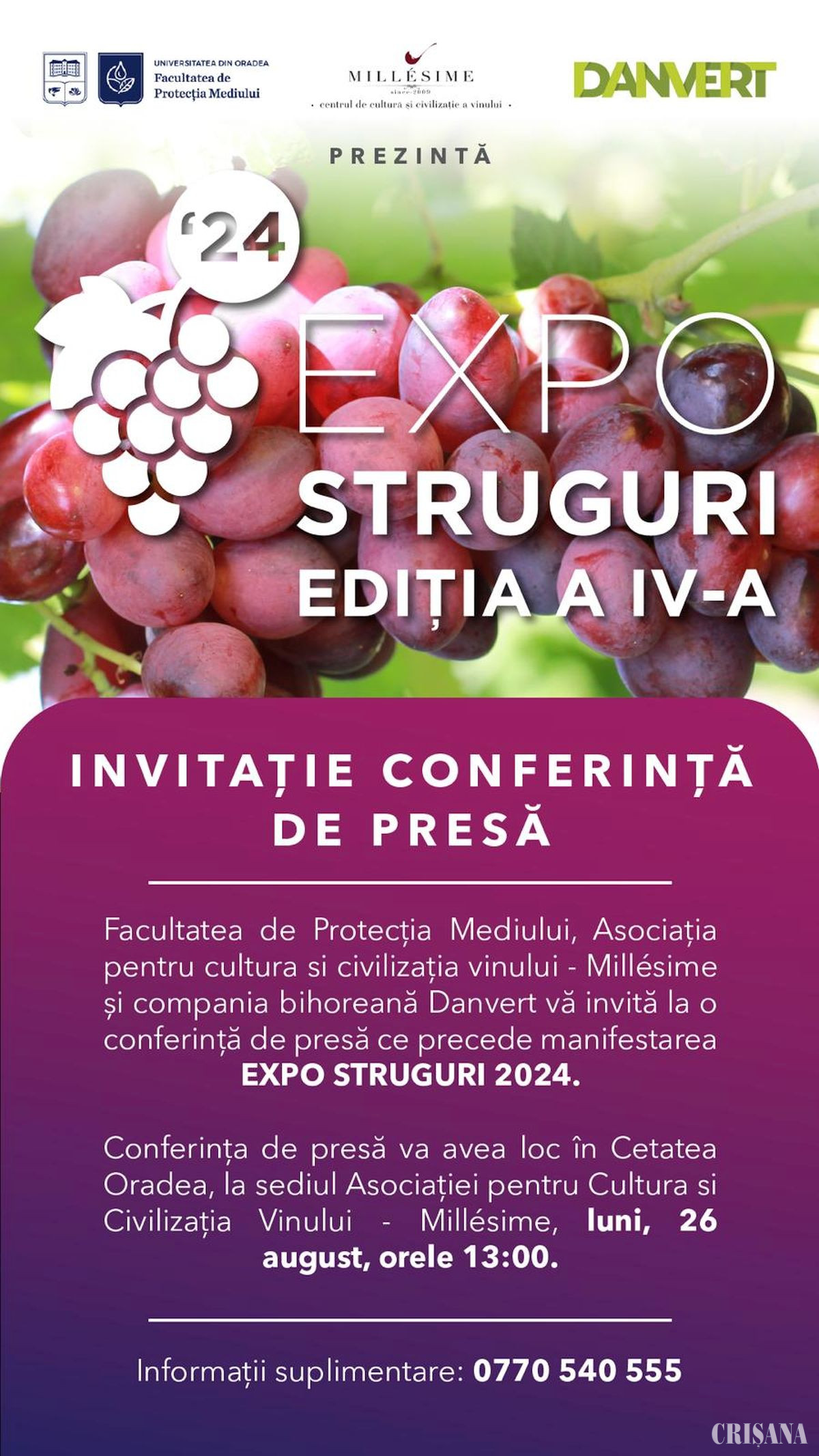Evenimentul este organizat de Facultatea de Protecția Mediului, compania bihoreană Danvert și Asociația pentru Cultura și Civilizația Vinului Millesime.
