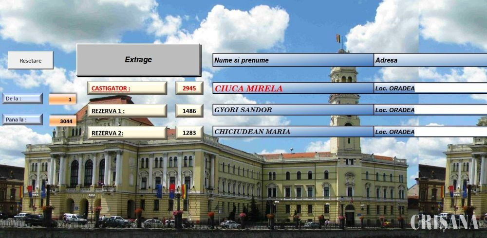 Extragerea computerizată a desemnat-o câștigătoare pe Ciuca Mirela, domiciliată pe strada George A. Petre, care va fi înștiințată prin adresă la domiciliu cu privire la posibilitatea ridicării premiului de la sediul Primăriei, în termen de 30 de zile. La această extragere au fost înscriși 3044 de contribuabili care și-au plătit online impozitele datorate pentru anul în curs în perioada 27 februarie - 5 martie 2023. Voucherul oferă o zi de acces la Aquaparkul Nymphaea pentru 2 adulți și 2 copii sub 18 ani şi este valabil până la sfârșitul anului. Conform regulamentului, au fost extrase și două rezerve, care ar putea beneficia de premiu în cazul în care câștigătorul, din diverse motive, nu își va revendica voucherul în termenul prevăzut. Campania „Plătește impozitul online și câștigă o zi de distracție la Aquapark Nymphaea” - ajunsă la a VII-a ediție, continuă și în anul 2023. Primăria Oradea va premia, și anul acesta, persoanele și firmele care vor plăti online taxele și impozitele datorate pe anul 2023 până la data de 31 martie, acordând săptămânal prin tragere la sorți un voucher, constând într-un bilet de familie pentru o zi la Aquapark Nymphaea. Premiile asigură accesul în Aquapark unei familii formate din 2 adulți și 2 copii cu vârsta sub 18 ani, pentru întreaga zi. Alte cheltuieli din incinta Aquapark-ului vor fi suportate de câștigători. Campania se desfășoară în perioada 9 ianuarie - 31 martie 2023. Extragerea următoare va avea loc în data de 16 martie.