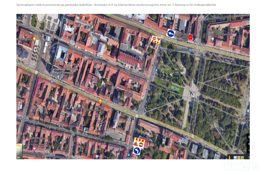 Începând de azi, 5 septembrie, până în data de 16 septembrie, se închide circulaţia pe strada Jean Calvin, tronsonul cuprins între strada Episcop Mihai Pavel şi strada Primăriei. Totodată, în această săptămână, este interzis virajul din strada Piața 1 Decembrie (zona Făt - Frumos) la stânga, spre strada Mihai Viteazul.