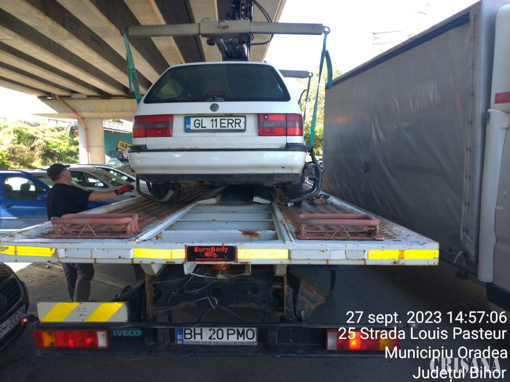 Joi, 28 septembrie, de pe strada Cuza Vodă nr. 43 a fost ridicat și autovehiculul marca Mercedes Benz, de culoare gri, având număr de înmatriculare BH 14 FZD, fiind considerat abandonat.