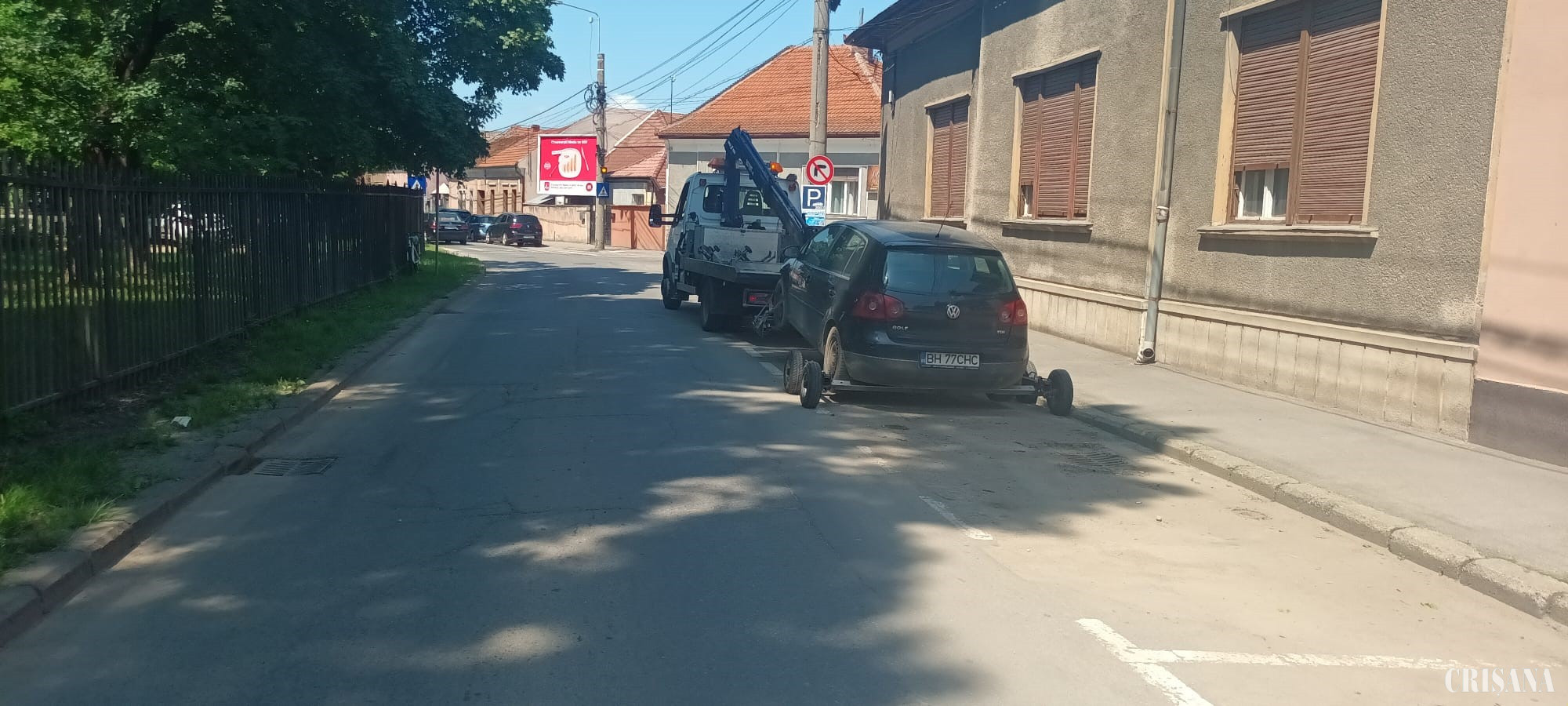 Volkswagen abandonat pe strada Evreilor Deportați - Mașină ridicată de pe domeniul public