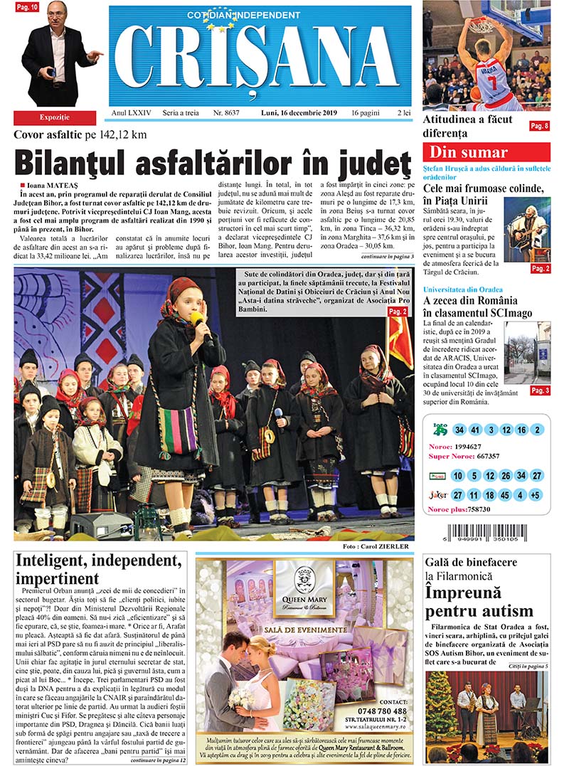Sute de colindători din Oradea, județ, dar și din țară au participat, la finele săptămânii trecute, la Festivalul Național de Datini şi Obiceiuri de Crăciun şi Anul Nou „Asta-i datina străveche”, organizat de Asociația Pro Bambini.
