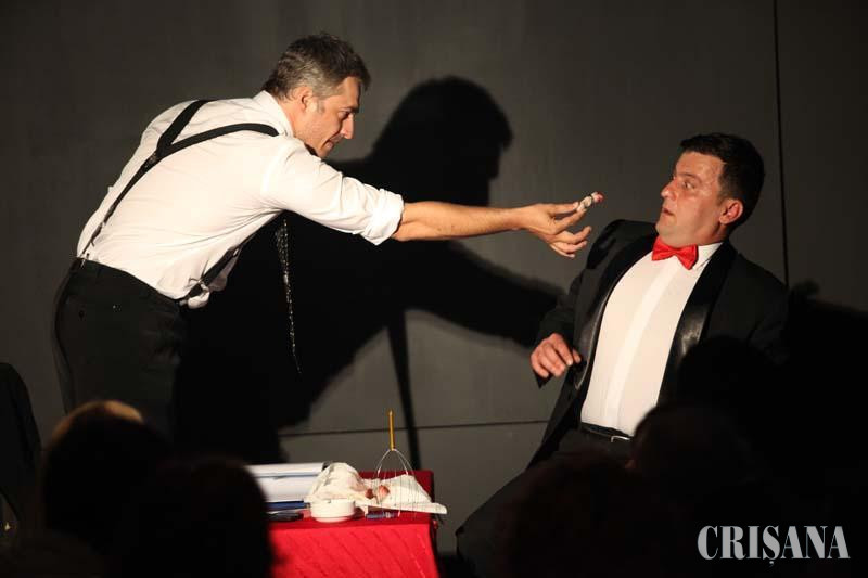 Comedia celor doi artişti a prins, până acum, extrem de bine la public. S-a râs şi aplaudat aproape non stop, cu prea puţine momente de respiro. Replicile au curs într-un ritm foarte alert, iar actorii trebuiau să ia pauze când aplauzele erau prea furtunoase. Richard e patronul unui cazinou, iar Sebi e fratele geamăn, uşor retard, care trebuie să se ocupe de zaruri şi cărţi. E simplu: tot ce trebuie să facă este să le schimbe la intervale regulate, pentru ca nu cumva, Doamne fereşte, să câştige cineva o sumă prea mare de bani. Dar, într-o seară, stimabilul a uitat să facă acest lucru, astfel că trei indivizi "respectabili" erau s-o mierlească. Replicile curg, poantele la fel, totul într-un ritm alert, spre deliciul publicului. Intrarea costă 15 lei, iar rezervări se pot face la tel. 0359-418.672, sau pe facebook, la teatrulstage@yahoo.com.