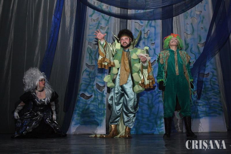 Aflat în premieră la Oradea, spectacolul "Mica sirenă" a umplut ieri sala mare a Casei de Cultură a Sindicatelor, la ambele reprezentaţii, atât de la ora 10.00, cât şi de la ora 11.00. Sutele de copii prezenţi la spectacol au trăit cu emoţie şirul de întâmplări dramatice, participând activ în desfăşurarea piesei, cu strigăte, aplauze şi încurajări. Adaptare după basmul omonim al lui Hans-Christian Andersen, piesa aduce în scenă nemuritoarea poveste a tinerei sirene Ariel, care, pentru fericirea pământească alături de prinţul Eric, este gata să părăsească toate măririle şi splendorile vieţii din adâncuri. Prezenţe vii, triste sau colorate, după caz, au avut Miruna Grangure, în rolul Micii Sirene, şi Adina Panait, în rolul vrăjitoarei Ursula. De asemenea, Camelia Ghinea, în rolul slujnicei maleficei vrăjitoare Ursula, a făcut un rol spectaculos, teatral, în înţelesul bun al cuvântului, plin de viaţă şi frenezie. Regele Mării (Sorin Fruntelată) a fost şi el convingător şi dramatic, aşa cum îi stă bine unui rege măcinat de dileme. Peisajul viu colorat a fost completat de vieţuitoarele marine, interpretate de Constantin Bery şi Florin Ibraşi. Despre prinţ (Marius Tudor) putem spune că a fost înalt, slab, tras la faţă, frumos şi cam trist. Micuţa Tabita Givoreanu, în vârstă de zece ani, a interpretat rolul îngeraşului. "Nu am emoţii când intru în scenă, pentru că simt că teatrul face parte din mine. La 9 ani am urcat prima oară pe scenă, iar de-atunci am mai jucat şi în alte spectacole, cum ar fi Vino la iesle şi Ornamente de Crăciun", ne-a mărturisit micuţa actriţă. Una peste alta, Teatrul de Vest Reşiţa a oferit copiilor o oră de sărbătoare. Peisajul acvatic, realizat cu ajutorul decorurilor materiale, a contribuit şi el la crearea unei lumi feerice, de basm.