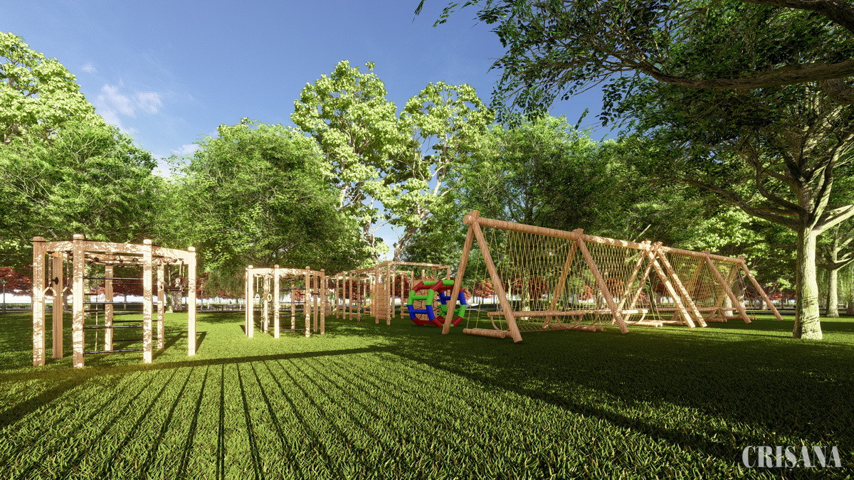 Locul de joacă se va moderniza integral, vor fi montate echipamente de joacă din materiale cât mai naturale, adecvate copiilor cu vârsta de până la 12 ani și celor cu dizabilități. Se vor asigura suprafețe generoase plantate cu mixuri de plante perene erbacee/florale; în plus, se dorește amenajarea unui iaz auto-sustenabil și se are în vedere posibilitatea de valorificare și „refațadizare” a construcției din partea vestică a parcului (ce adăpostește sonda aparținând SC Transgex SA). În parc va exista și o toaletă publică modernă, cu sistem de auto-curățare, zonă de vestiare, duşuri.