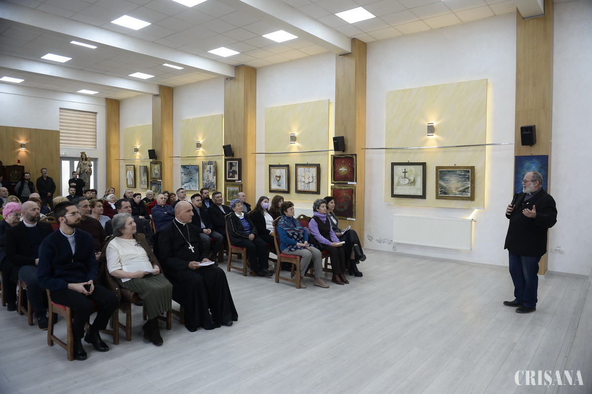 În Aula Magna a Seminarului „Sfinții Trei Ierarhi: Vasile, Grigore și Ioan”, a avut loc ieri vernisajul expoziției „Biserica în zeghe” a artistei Alexandra Belciug. La eveniment a fost prezent și Preasfinția Sa Virgil Bercea, episcopul greco-catolic de Oradea, prezentarea expoziției fiind făcută de către părintele dr. Alexandru Buzalic.