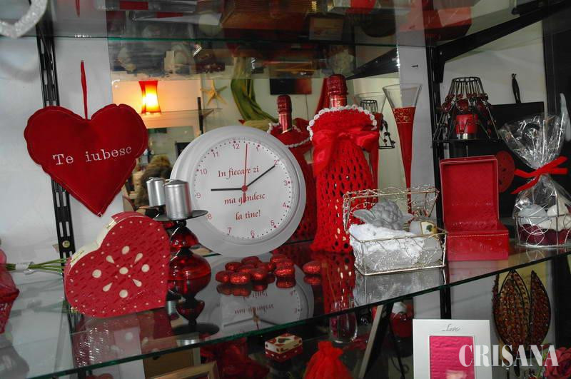La magazinul Liani Leder, de exemplu, se găsesc, printre altele, ceasuri personalizate şi inimioare brodate cu mesaje de dragoste, rame foto decorate cu piele roşie, casete cu bijuterii sub formă de inimă, vinuri cu mesajul "Te iubesc", aranjamente florale cu flori parfumate etc. Adela Rusu, manager de magazin, spune că la mare căutare sunt şi papirusurile cu mesaj de dragoste, legate cu cheiţa inimii, care se pot cumpăra la 15 lei, dar şi pralinele belgiene sub formă de inimă, care costă 14 lei. Interesante sunt şi coşuleţele cu petale de trandafiri, parfumate, bineînţeles, dar şi sfeşnicele, şi lumânările parfumate, care pot fi cumpărate la 20 de lei fiecare. Cei care nu au timp să vină direct la magazin, pe strada Patrioţilor nr. 4, pot achiziţiona cadourile on-line, pe site-ul www.cadouridininimă.ro. Gestionara magazinului "Orientale" de pe Corso spune că gusturile cumpărătorilor diferă de la un an la altul. Astfel, dacă într-un an au trecut foarte bine jucăriile din pluş, în alt an s-au cumpărat mai mult suporturile de telefon cu inimioară. Într-o vitrină frumos amenajată, în acest magazin se găsesc produse specifice sărbătorii de Sfântul Valentin: cutii de bijuterii, ursuleţi cu mesaj de dragoste, suport de creion şi suport de telefon cu inimioară, set de căniţe, rame foto şi candele cu inimioară, set de lumânări etc. Unele dintre magazine şi-au amenajat vitrinele cu produse specifice Zilei Îndrăgostiţilor imediat după terminarea Sărbătorilor de Iarnă. Este şi cazul magazinului King Art, de pe strada Republicii nr. 13, unde zeci de inimioare au împânzit vitrinele magazinului, atrăgând clienţi. Orădenii pot cumpăra de aici rame foto, căni cu diferite mesaje de dragoste, figurine cu şi fără candelă, perniţe de diferite mărimi sub formă de inimioare, glob de cristal pentru poze, candele cu aromă, suport de sticlă sub formă de inimioară, suport de lumânare, magneţi cu loc pentru poză etc. "De aproximativ două săptămâni avem în magazinul nostru produse de Sfântul Valentin. Au trecere obiectele aflate la vedere, care sunt roşii, simple şi accesibile, de asemenea, se vând foarte bine bijuteriile din argint. Clienţii vin şi cu câteva zile bune înainte pentru a cumpăra cadouri de Sfântul Valentin", ne-a declarat Adriana Sacadati, responsabilă magazin.