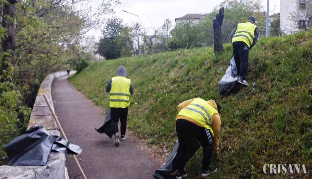 Acțiuni de salubrizare în Oradea - Malul stâng al Crișului Repede, curăţat de deţinuţi