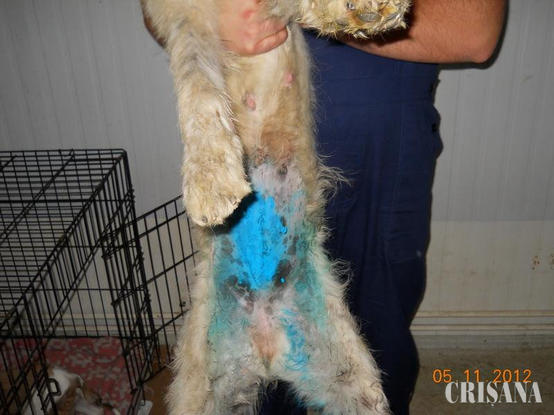 Fotografiile cu o căţeluşă albă, purtată în braţe de un angajat al Adăpostului Grivei, plină de sânge, cu burta despicată în care se vedeau organele interne, au oripilat comunitatea orădeană şi nu numai. Imaginile au fost postate pe o reţea de socializare de voluntarii care, sâmbătă, au descoperit în ultimul ţarc amenajat în centrul de pe Coriolan Hora o căţeluşă însângerată. Voluntarii au reclamat imediat situaţia. "Împreună cu mama mea, am ajuns sâmbătă, 3 noiembrie, în jurul orei 12.30, la adăpost. Eram împreună cu alţi voluntari. În jurul orei 13.00, am ajuns la ţarcurile din spate şi foarte aproape de gard, am văzut o căţeluşă, care gemea şi din burta căreia ieşeau organele interne. Şocată, am alergat în faţă, la cabinetul veterinarului şi i-am relatat ce am văzut. Medicul veterinar Cosmin Şimonca mi-a spus să fac în scris o sesizare şi să o depun la Primărie şi să plec de acolo. În acel moment, în adăpost era şi domnul Anton, administratorul Adăpostului Grivei. Doi îngrijitori s-au dus după căţel şi l-au adus în faţă. Cei de acolo au susţinut iniţial că noi, voluntarii, am luat în braţe căţelul şi aşa s-a desfăcut operaţia", ne-a declarat un voluntar, care a dorit să-şi păstreze anonimatul în urma ameninţărilor că i se va interzice să mai calce în adăpost.