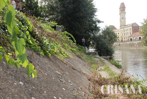 Administraţia Bazinală de Ape Crişuri a finalizat lucrările pe ambele maluri ale Crişului pe porţiunea Podul Decebal - Podul de pontoane. Aici au fost demolate balustradele vechi de 40 de ani şi au fost montate noi grinzi şi balustrade. Pe malul stâng au fost înlocuiţi 570 m de balustradă, iar pe malul drept, alţi 515 de metri. Investiţia s-a ridicat la 1 milion de lei. Odată finalizate aceste lucrări, municipalitatea s-a angajat să monteze bănci, coşuri de gunoi şi să asigure iluminatul public. Al doilea tronson atacat este cel cuprins între Podul Ferdinand şi Centrul de Calcul, acolo unde pe malul drept vor trebuie efectuate ample lucrări pentru ecologizarea zonei. Lucrările de aici, care se vor întinde pe toată lungimea de 550 de metri, presupun defrişarea vegetaţiei, curăţarea malului şi demolarea taluzului existent, urmând să fie turnată o grindă de beton, peste care se vor placa pietre de râu. Totodată, în primăvara anului viitor, tronsonul va fi înierbat de către municipalitate. Investiţia presupune inclusiv tăierea unora dintre sălciile care se află pe mal. "Din cei 550 de metri, 280 sunt prevăzuţi cu trepte, care sunt vechi de 35 de ani şi foarte şubrede. Vom turna o nouă grindă de beton, care va fi placată cu pietre de râu. Totodată, vom da o pantă mai lină. În plus, pe întregul tronson vom avea un taluz înierbat", ne-a declarat Pasztor Sandor, directorul ABA Crişuri. Întreaga investiţie se va ridica la 3 milioane lei. Lucrările sunt programate să demareze săptămâna viitoare şi au ca termen de finalizare sfârşitul anului. Totodată, Primăria Oradea s-a angajat să amenajeze cu bănci şi coşuri de gunoi zona, valoarea investiţiei ridicându-se la 250.000 lei.