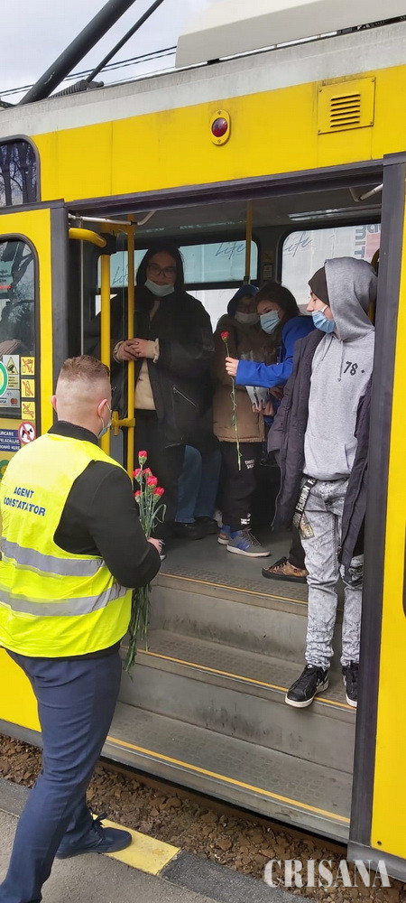 Doamnele și domnișoarele care au călătorit ieri cu tramvaiul prin Oradea au primit din partea agenților constatatori câte o garoafă roșie, alături de tradiționala urare: „La mulți ani!”